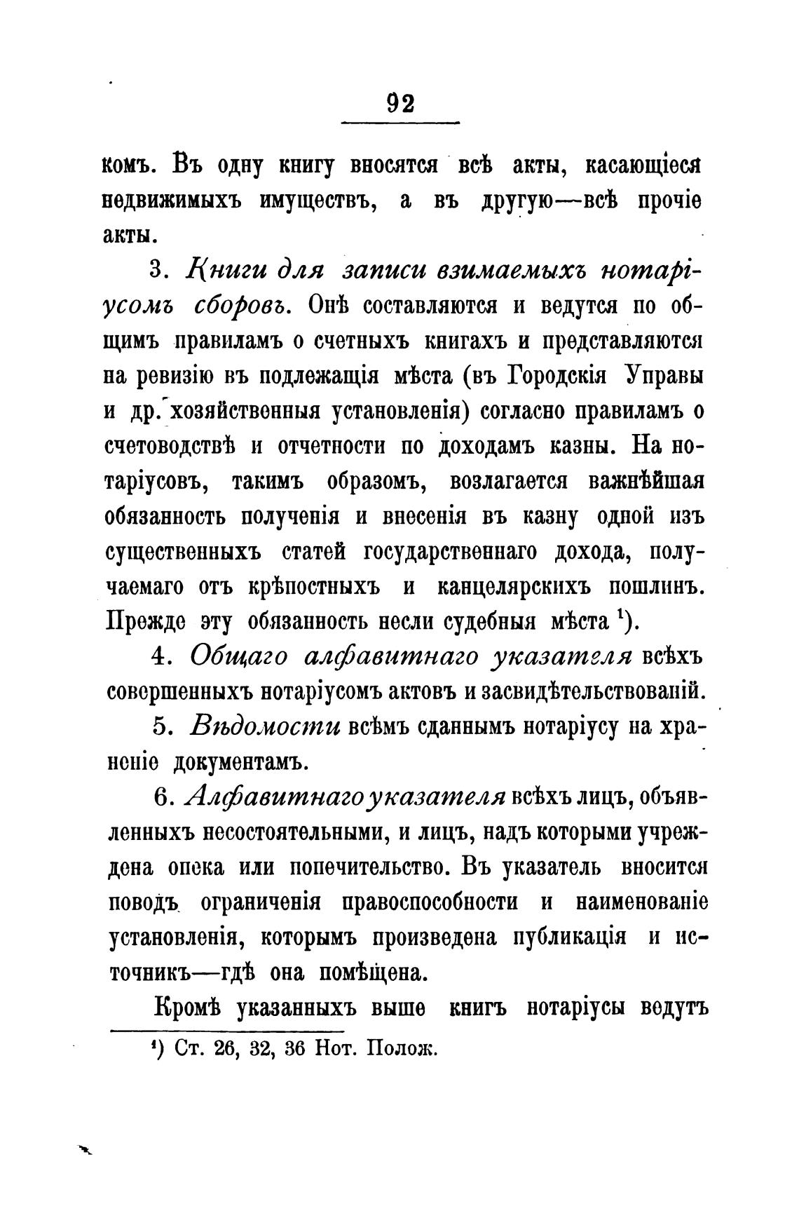 1) Ст. 26, 32, 36 Нот. Полож.