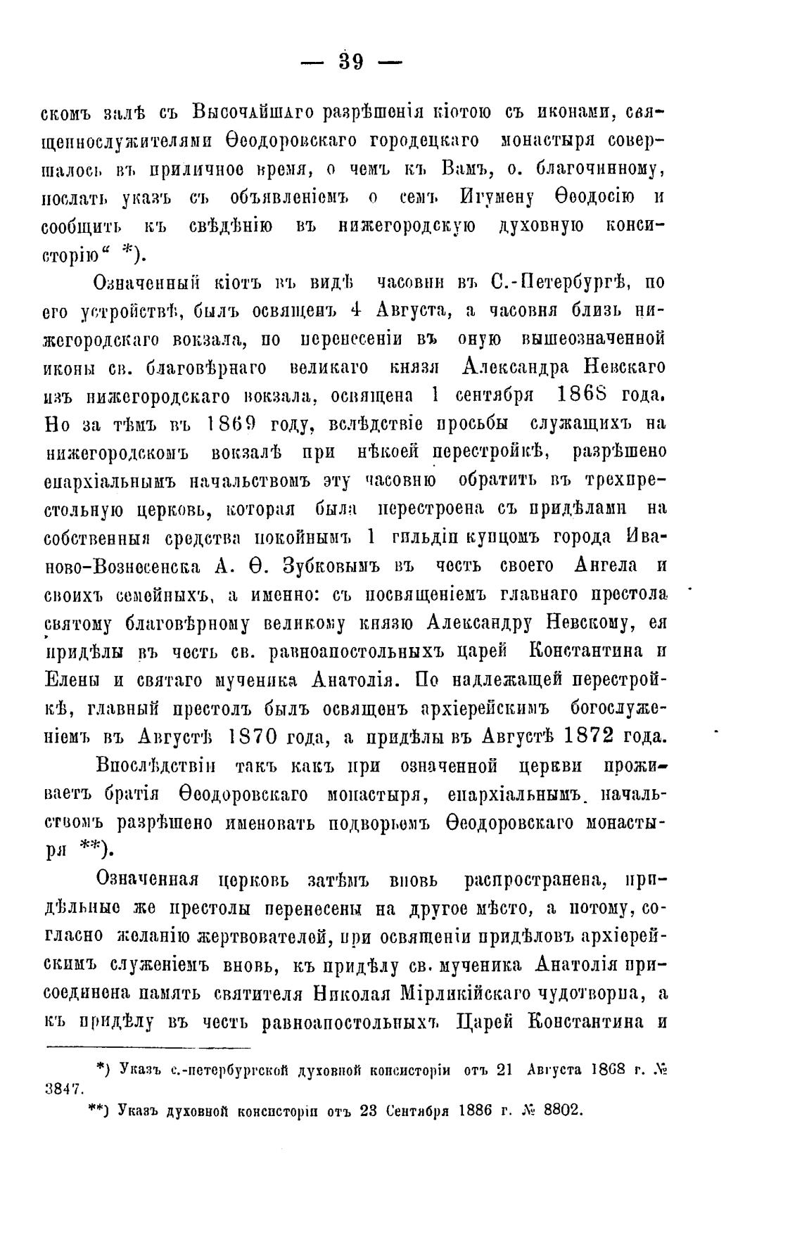 **) Указъ духовной конспсторй1 отъ 23 Сентября 1886 г.