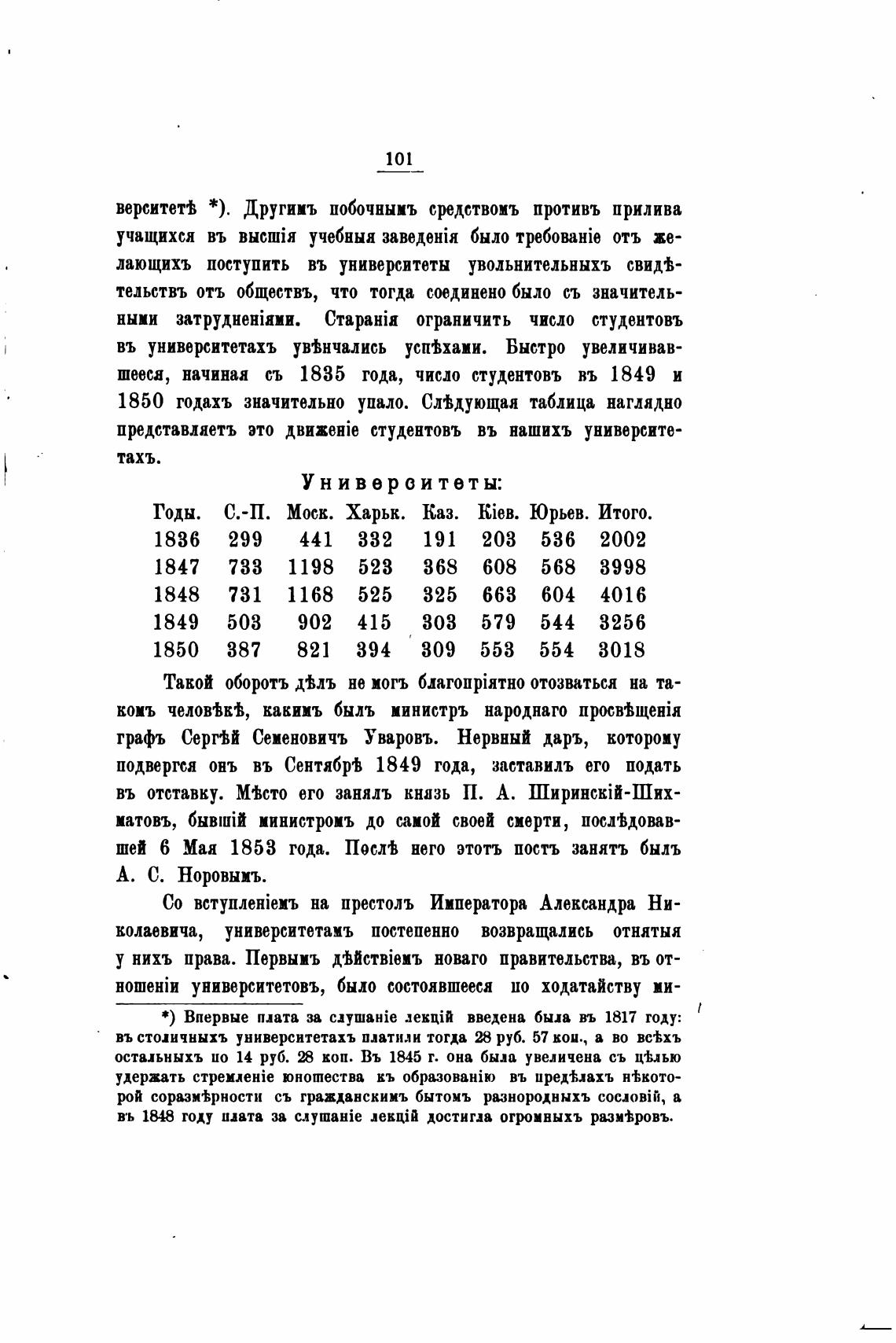 въ столичныхъ университетахъ платили тогда руб. 57 кои., а во вс•ћхъ