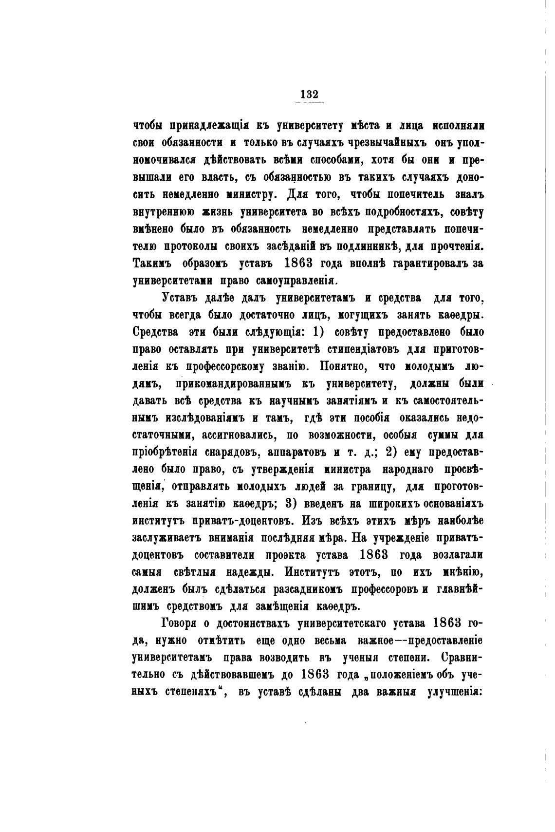 Говоря о достоинствахъ университетскато устава 1863 го-