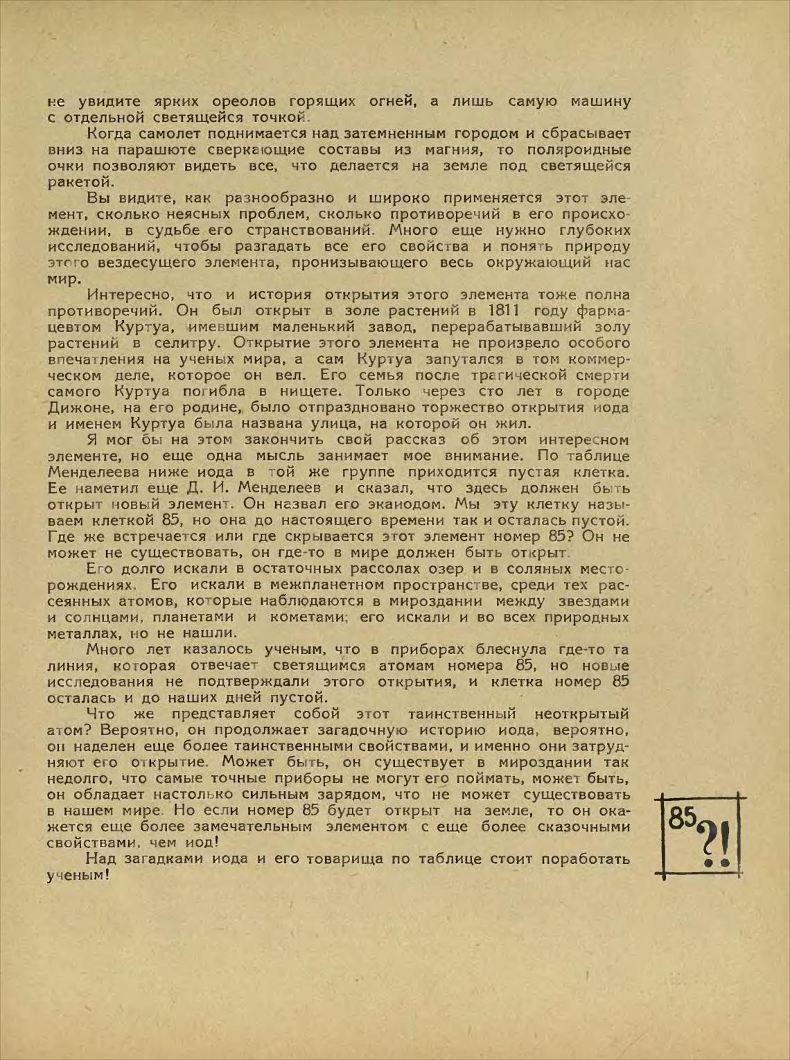 открыт новый элемент. Он назвал его экаиодом. Мы эту клетку назы-