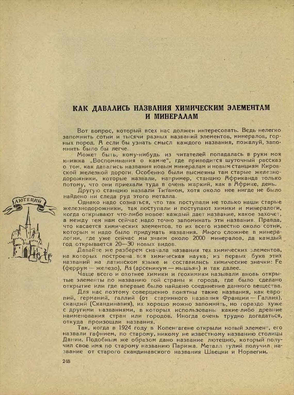 Чаще всего и охотнее химики и геохимики называли вновь откры-