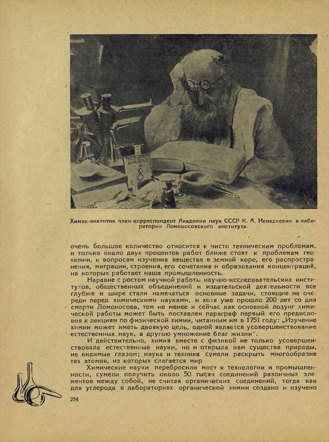 Химик-аналитик член-корреспондент Академии наук СССР К. Н. Ненадкевич в лабо-