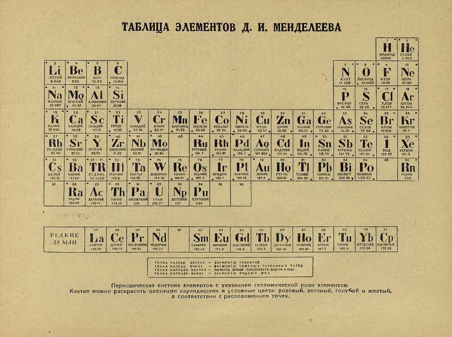 ТАБЛИЦА ЭЛЕМЕНТОВ Д. И. МЕНДЕЛЕЕВА
