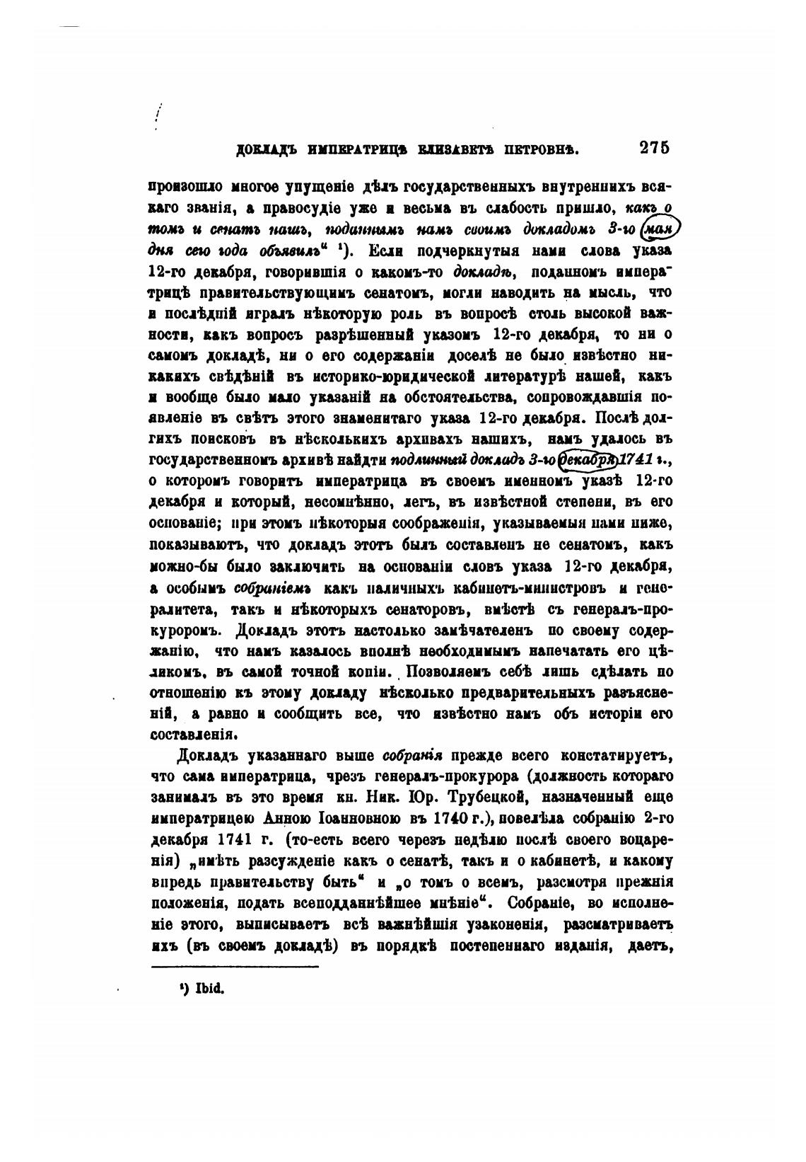 показывають, что докладъ этоть быль составлень не сенатомъ, какъ