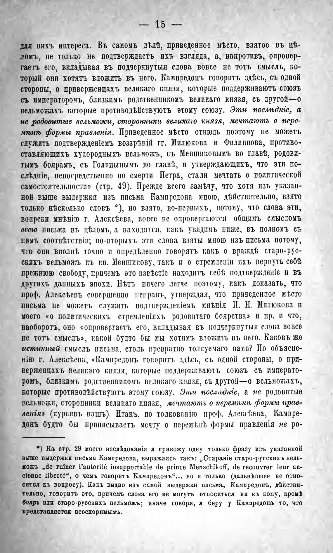выше выдержки письма Кампредона, выражаясь такъ: „Старан:е старо-русскихъ вель-