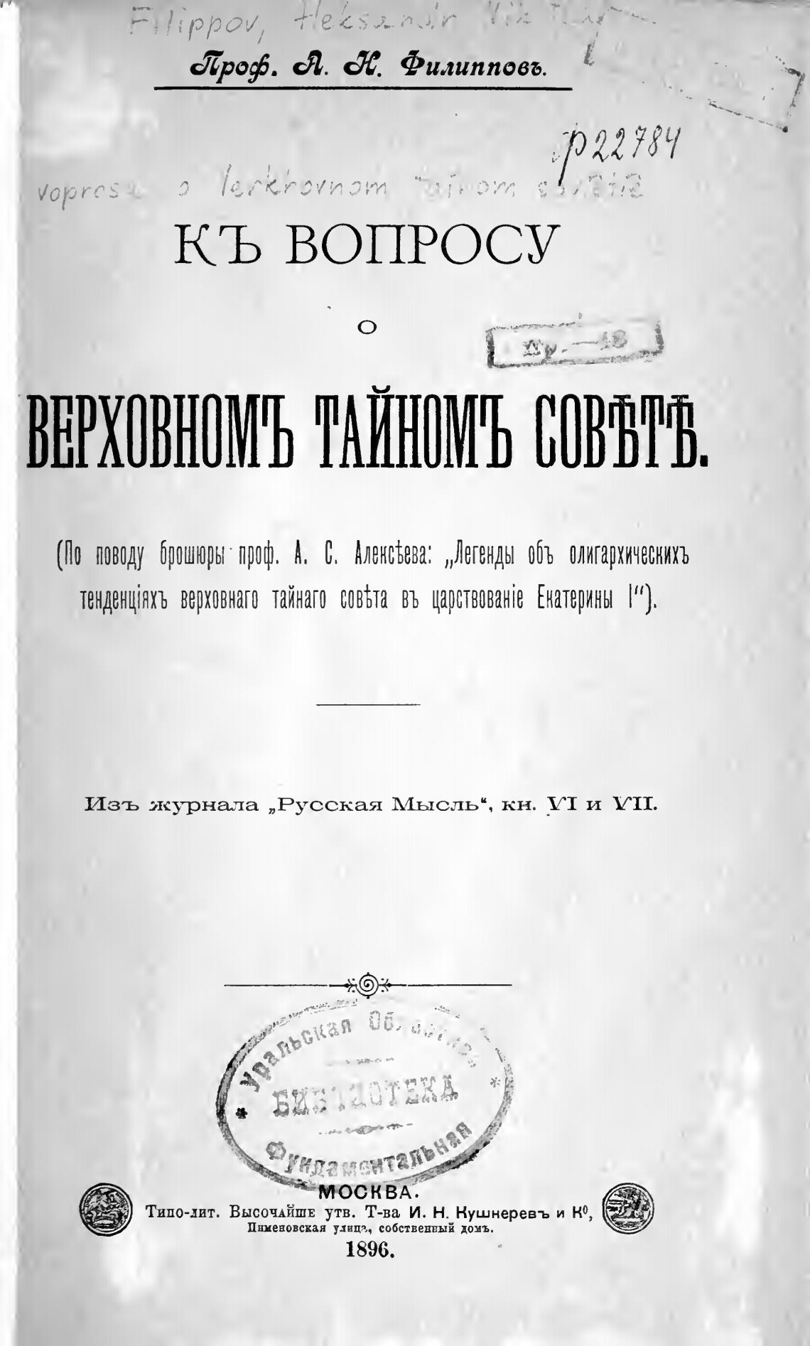 Изъ леурнаела „Русская Мысль“, кн. VI и VII.