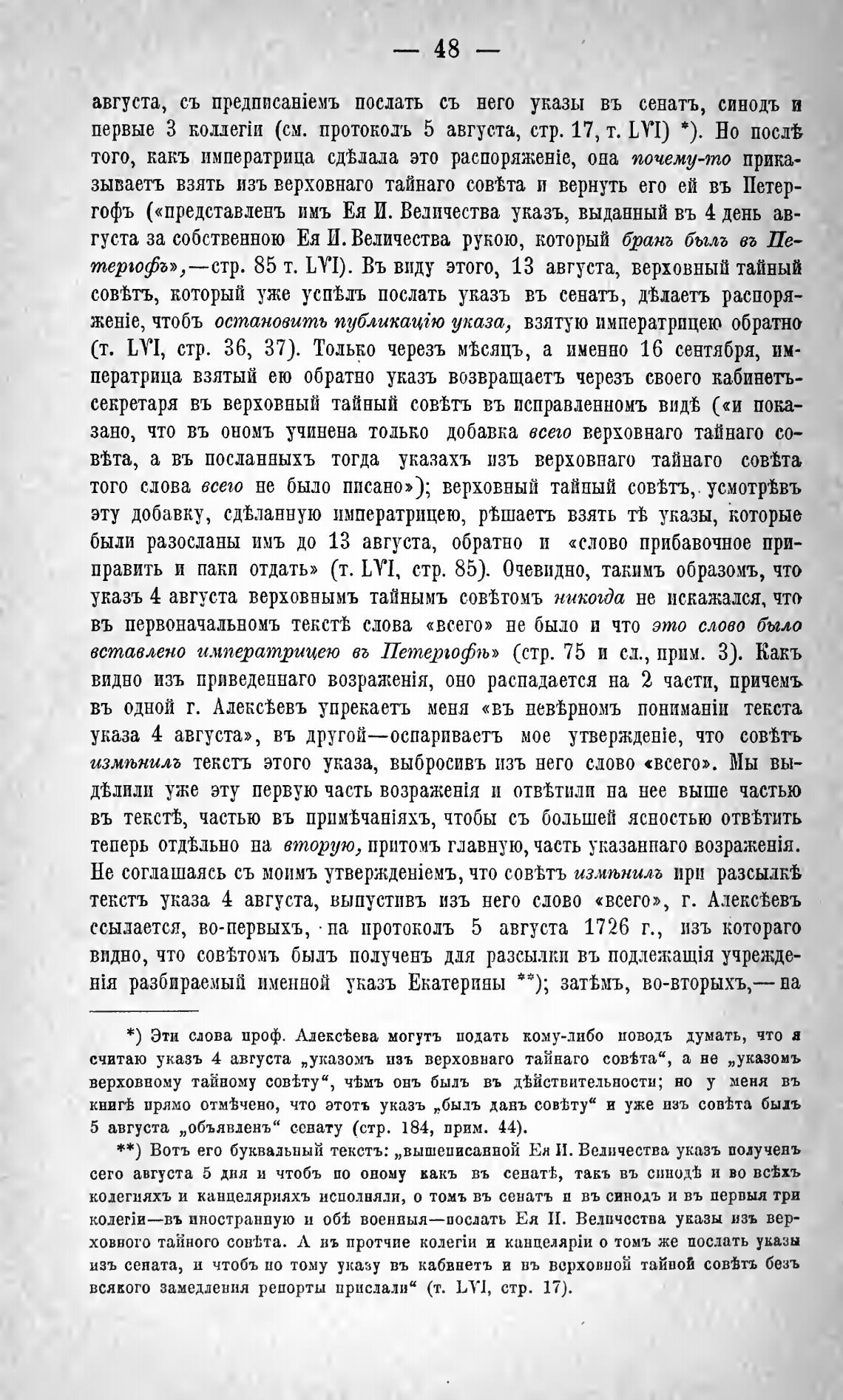 считаю указъ 4 августа „указомъ изъ верховнаго тайнаго а не „указомъ