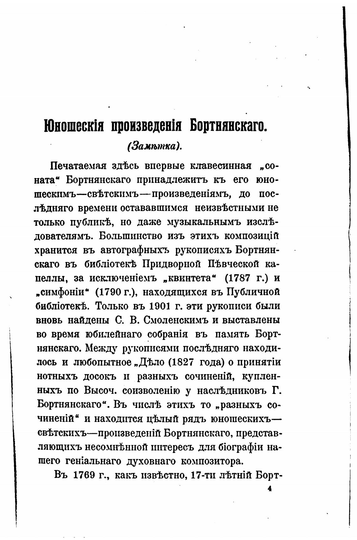 Юношеск1я произведенйя Бортнянскаго.