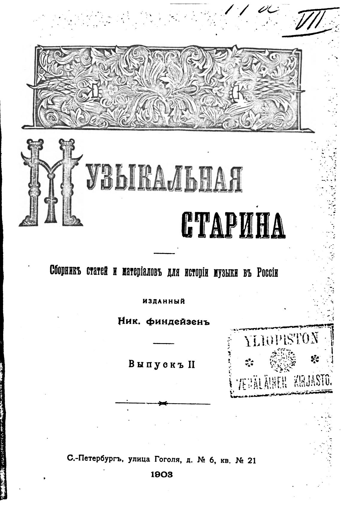 С.-Петербургъ. улица Гоголя, д. N2 б, кв. 21