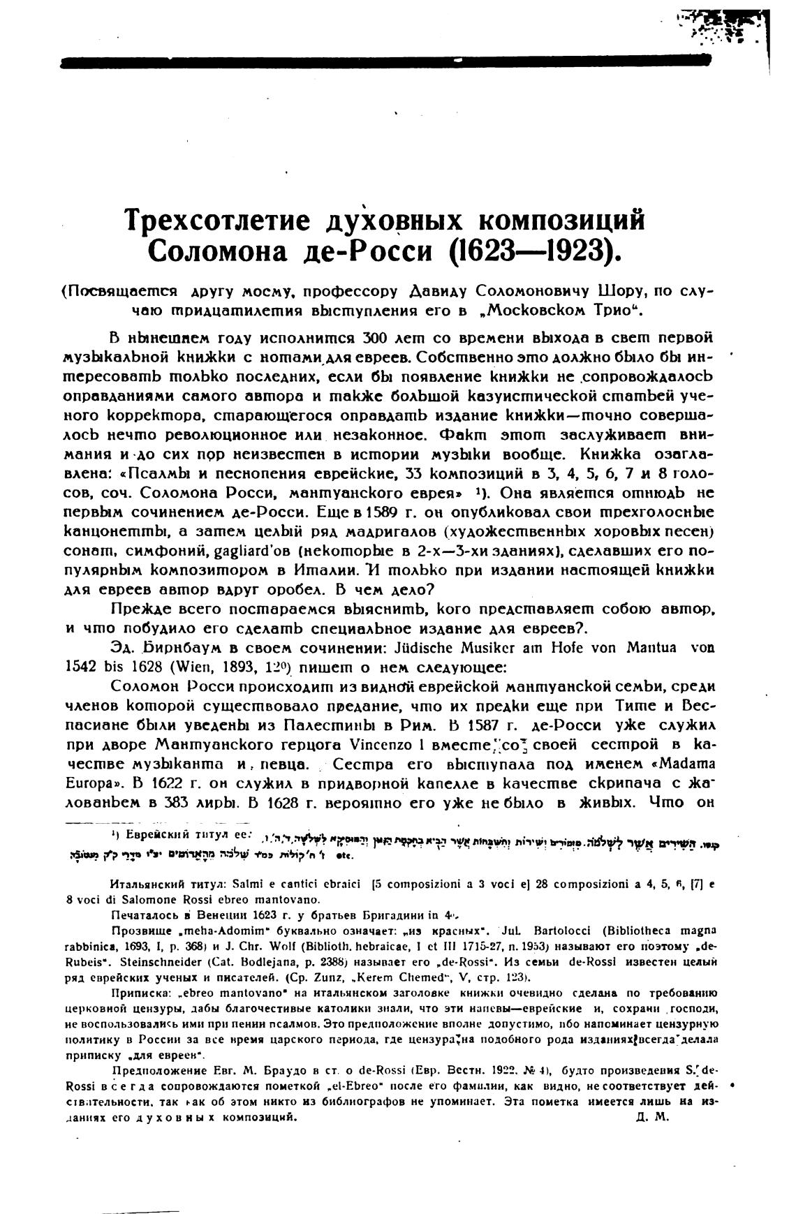 Предположение Евг. М. Браудо н ст. о de-Rossi (Евр. Вестн. 1922. 4), будто произведения S.: de•