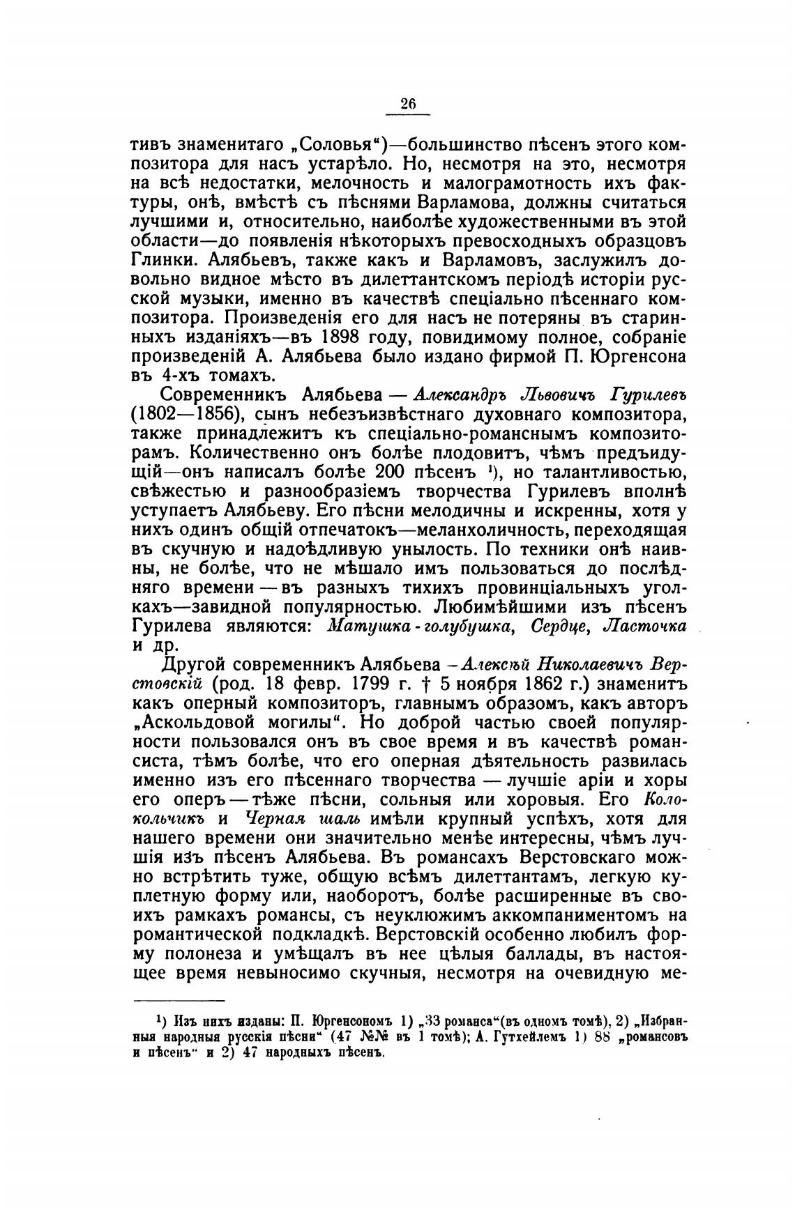 уступаетъ Алябьеву. Его п%сни мелодичны и искренны, хотя у