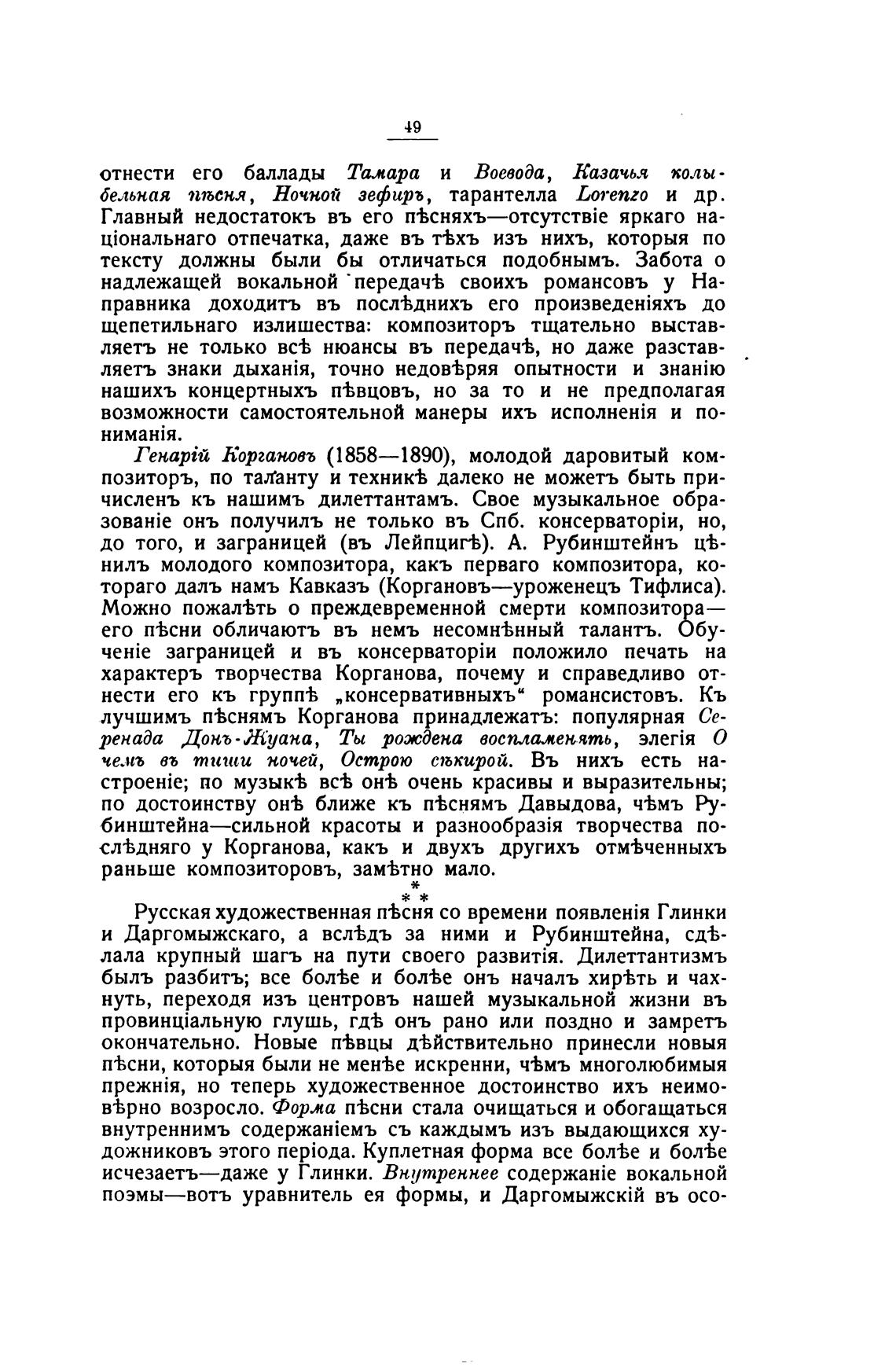 лучшимъ п%снямъ Корганова принадлежать: популярная Се-