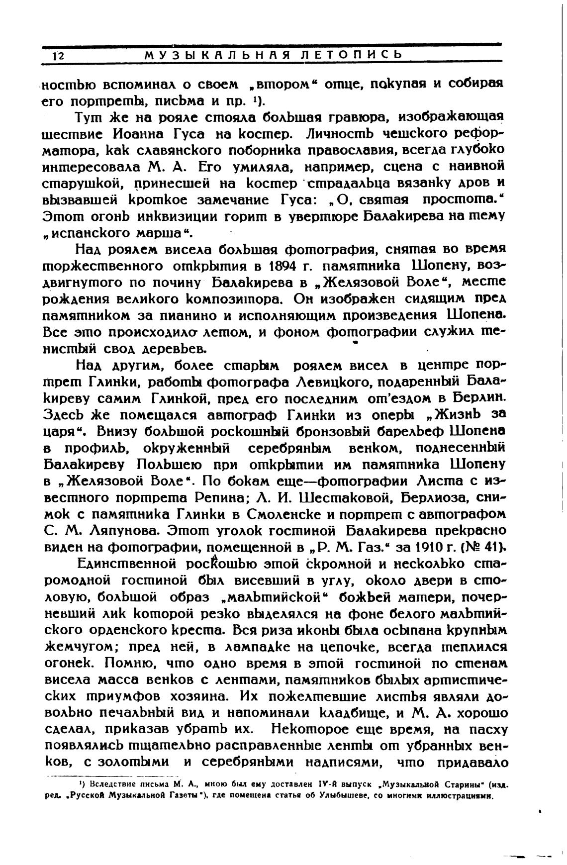 1) Вследствие письма М. А.. мною был ему доставлен 1 У-Й выпуск „Музыкальной Старины“ (изд.