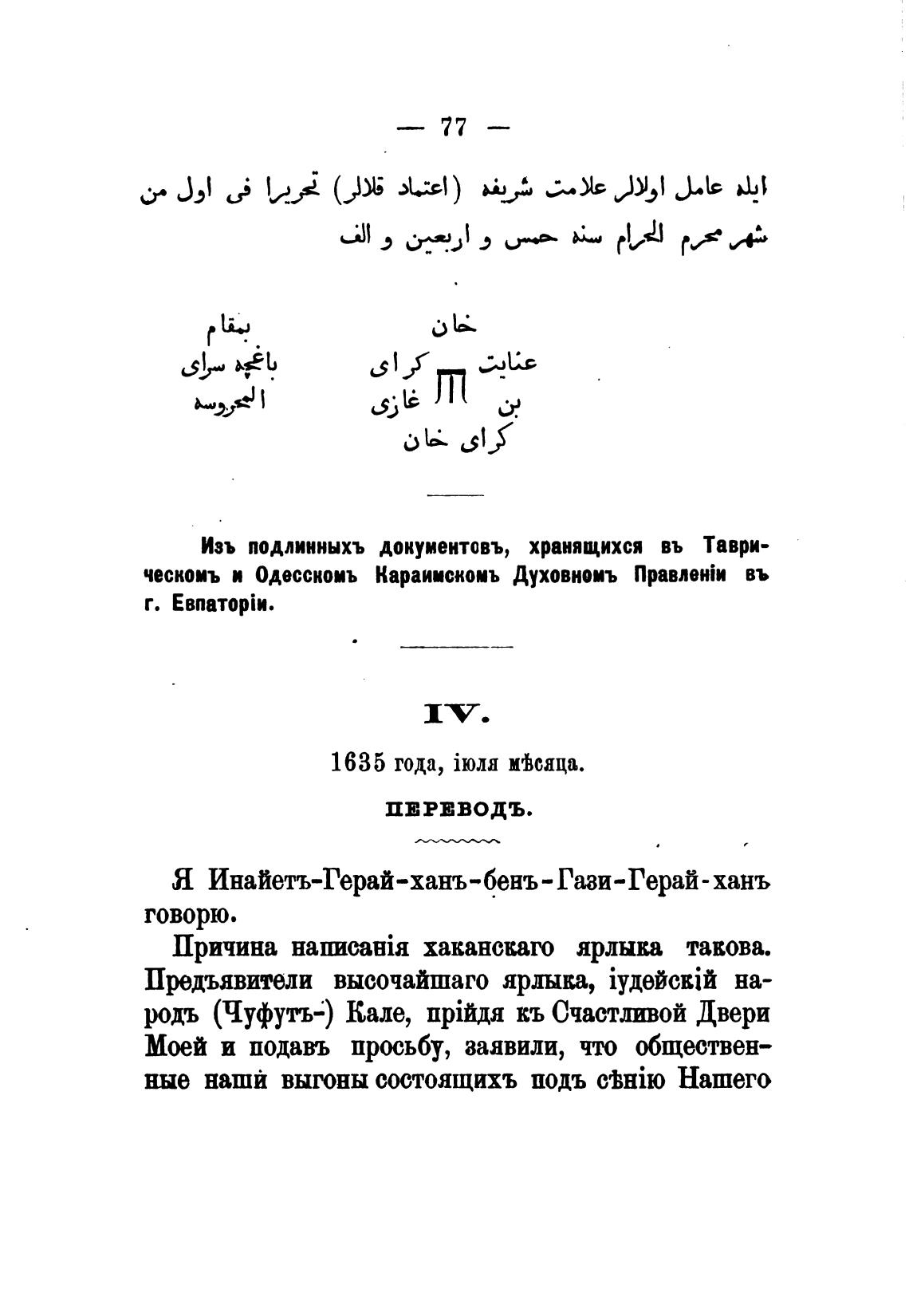 Изъ подлинныхъ документовъ, хранящихся въ Таври-