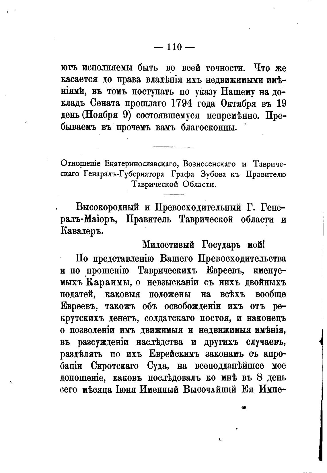 скаго Генаралъ-Губернатора Графа Зубова кь Правителю