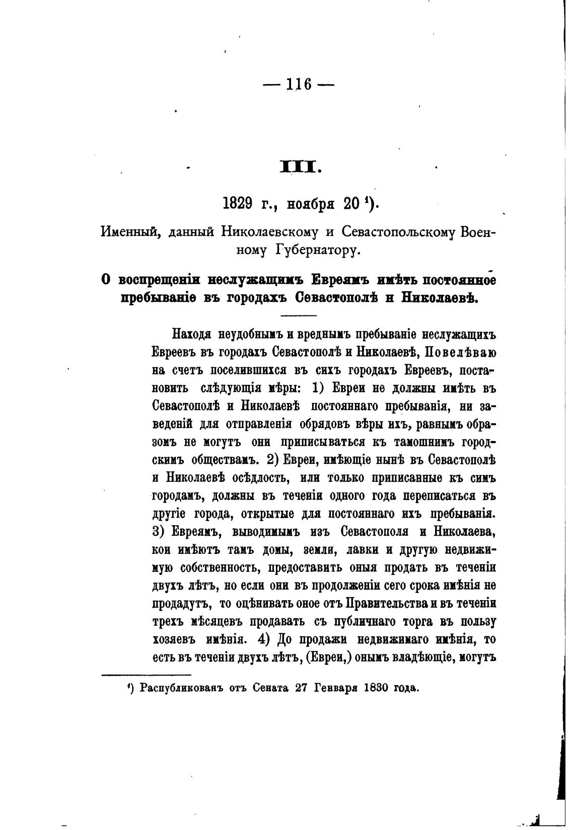 4) Распубликованъ отъ Сената 27 Геввара 1830 года.