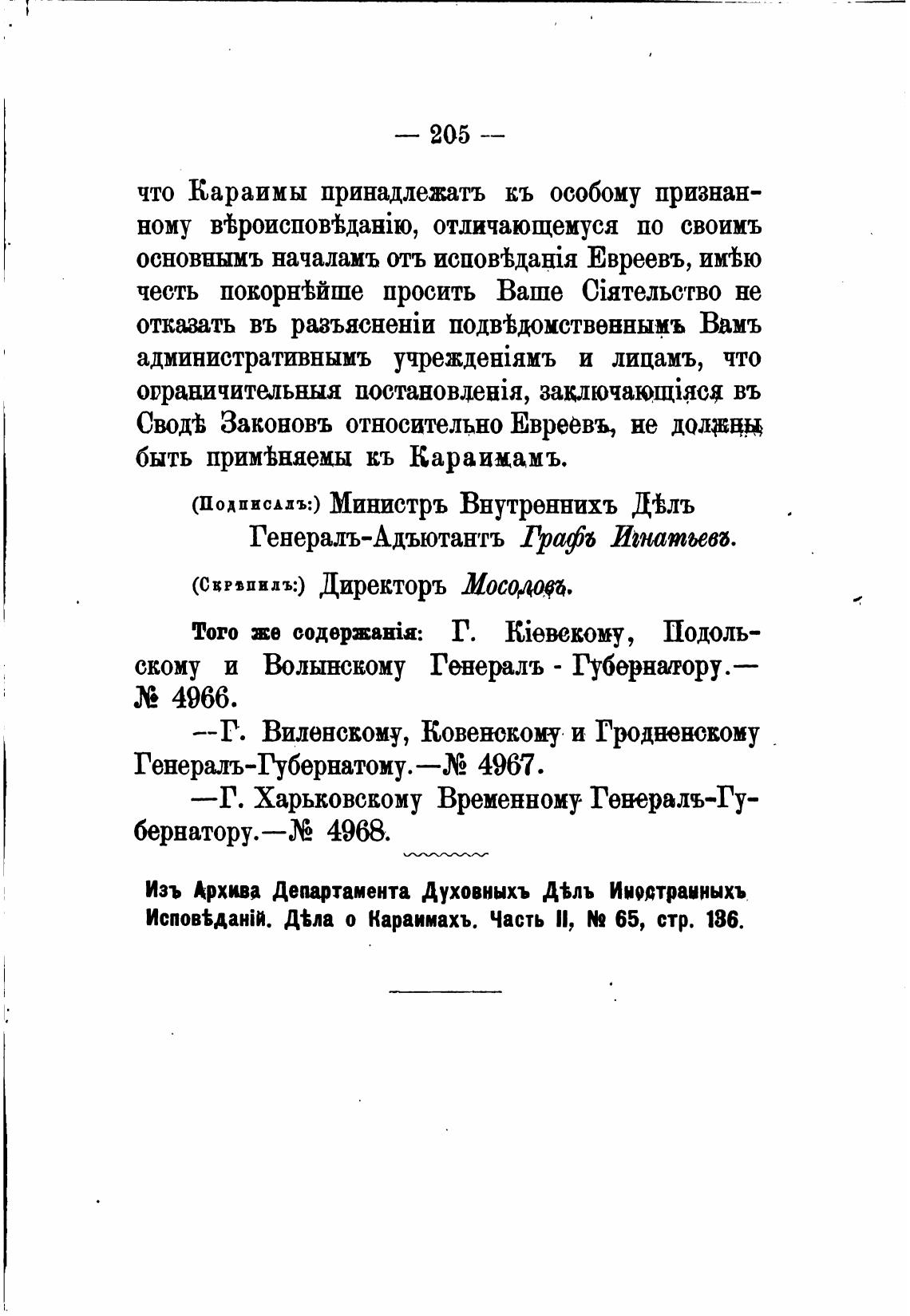 Д%ла о Караимахъ. Часть Il, N2 65, стр. 186.