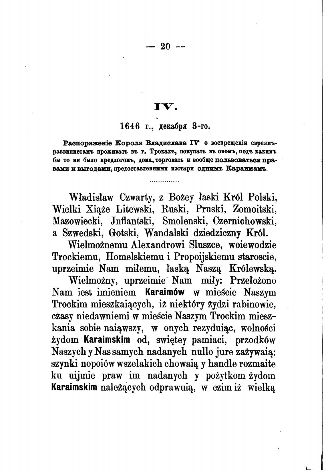PacnopzzeHie Еородя Владислава IV о евреамъ-