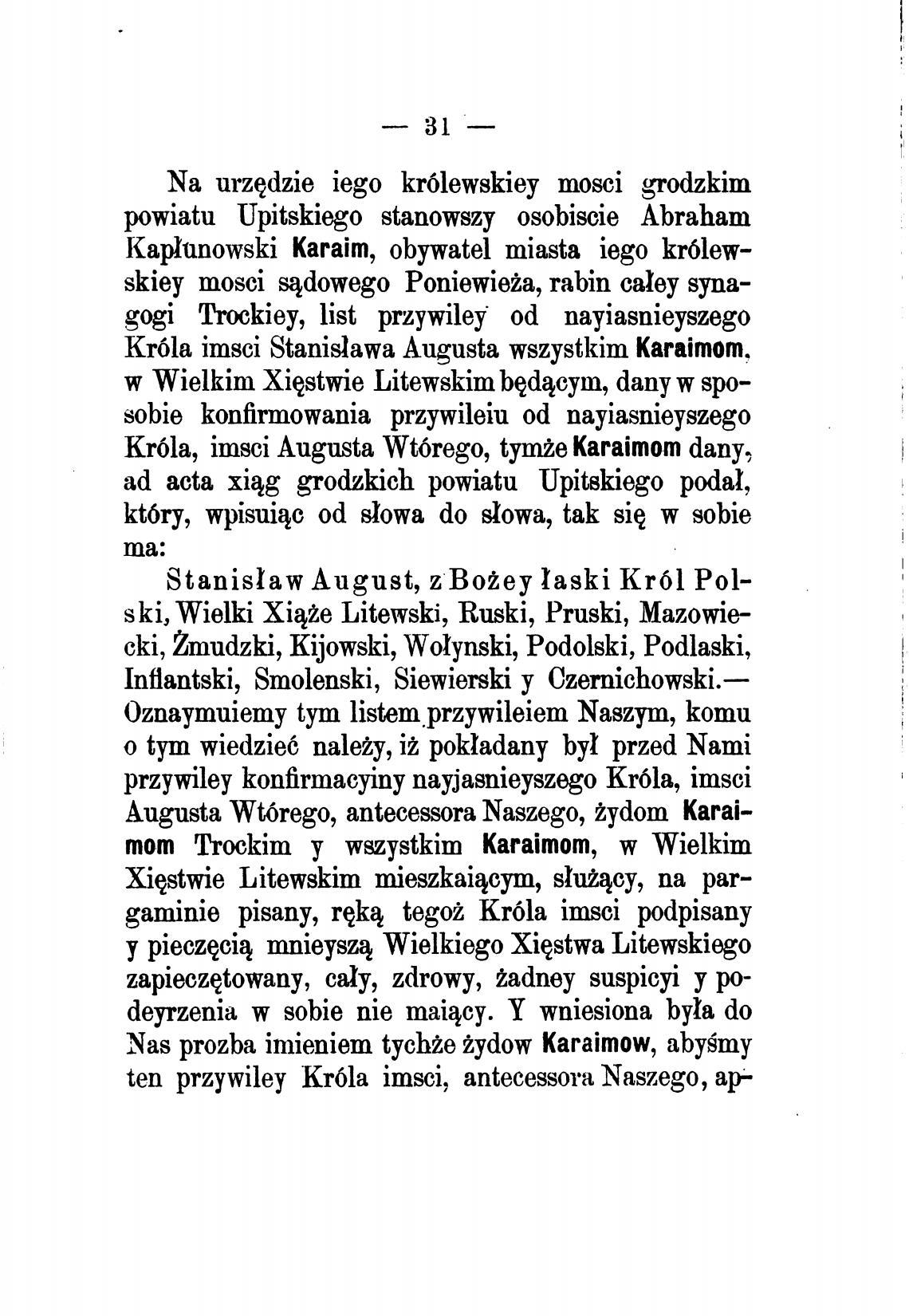 kr61a imsci Stanislawa Augusta wszystkim karaimom,