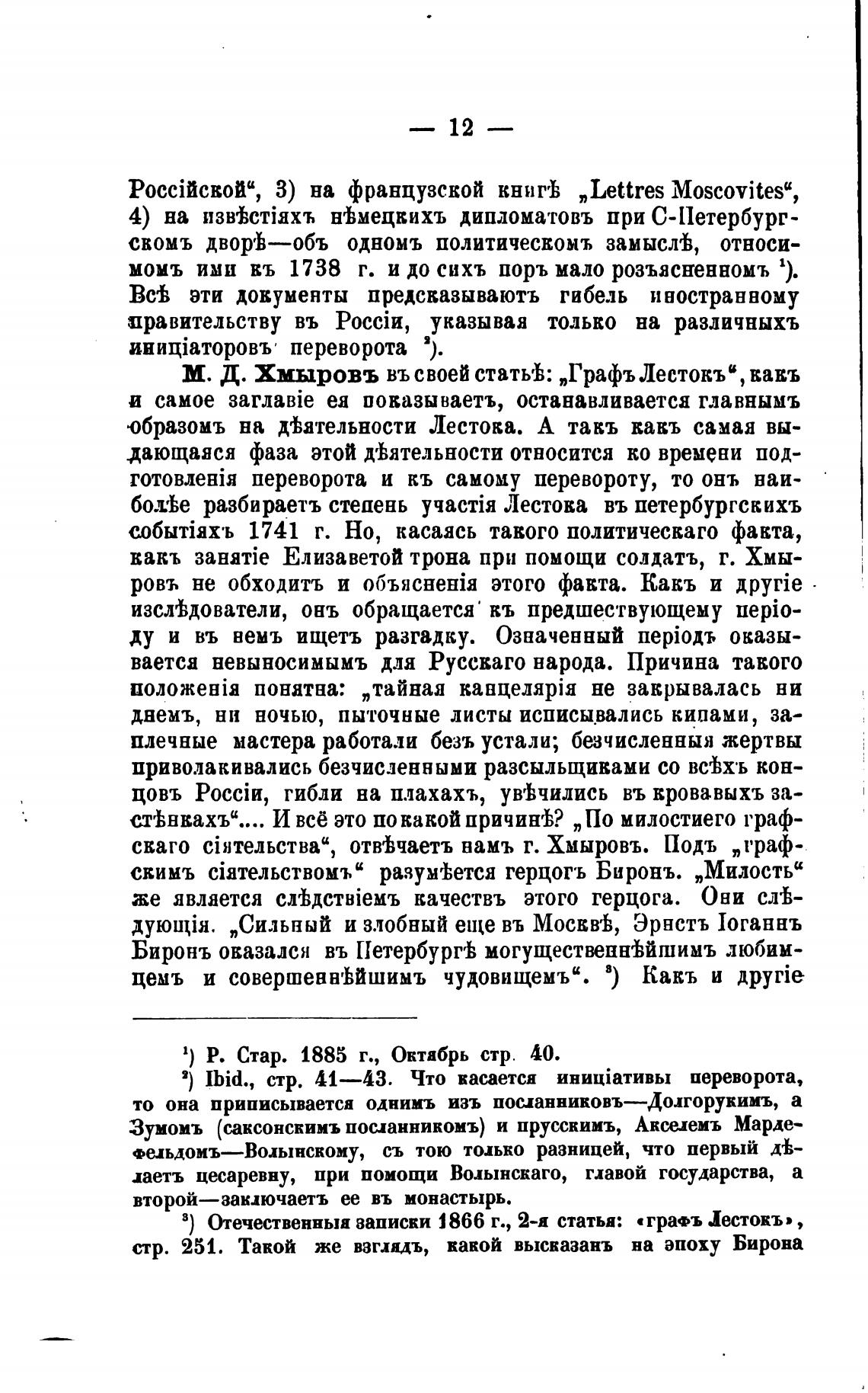 М. Д. Хмыровъ въ своей статыь: „ГрафъЛестокъВ, вавъ