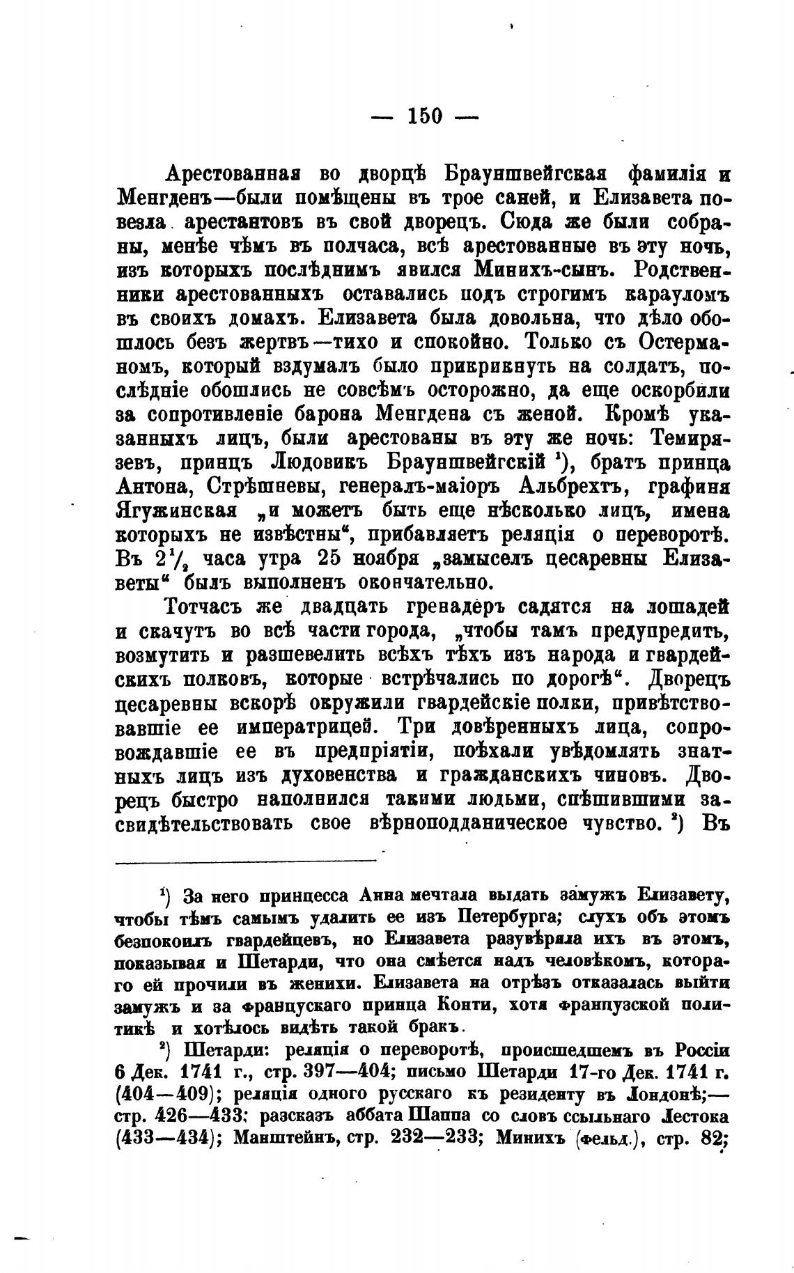 2) Шетарди: pumia о перевороть, происшедшемъ въ