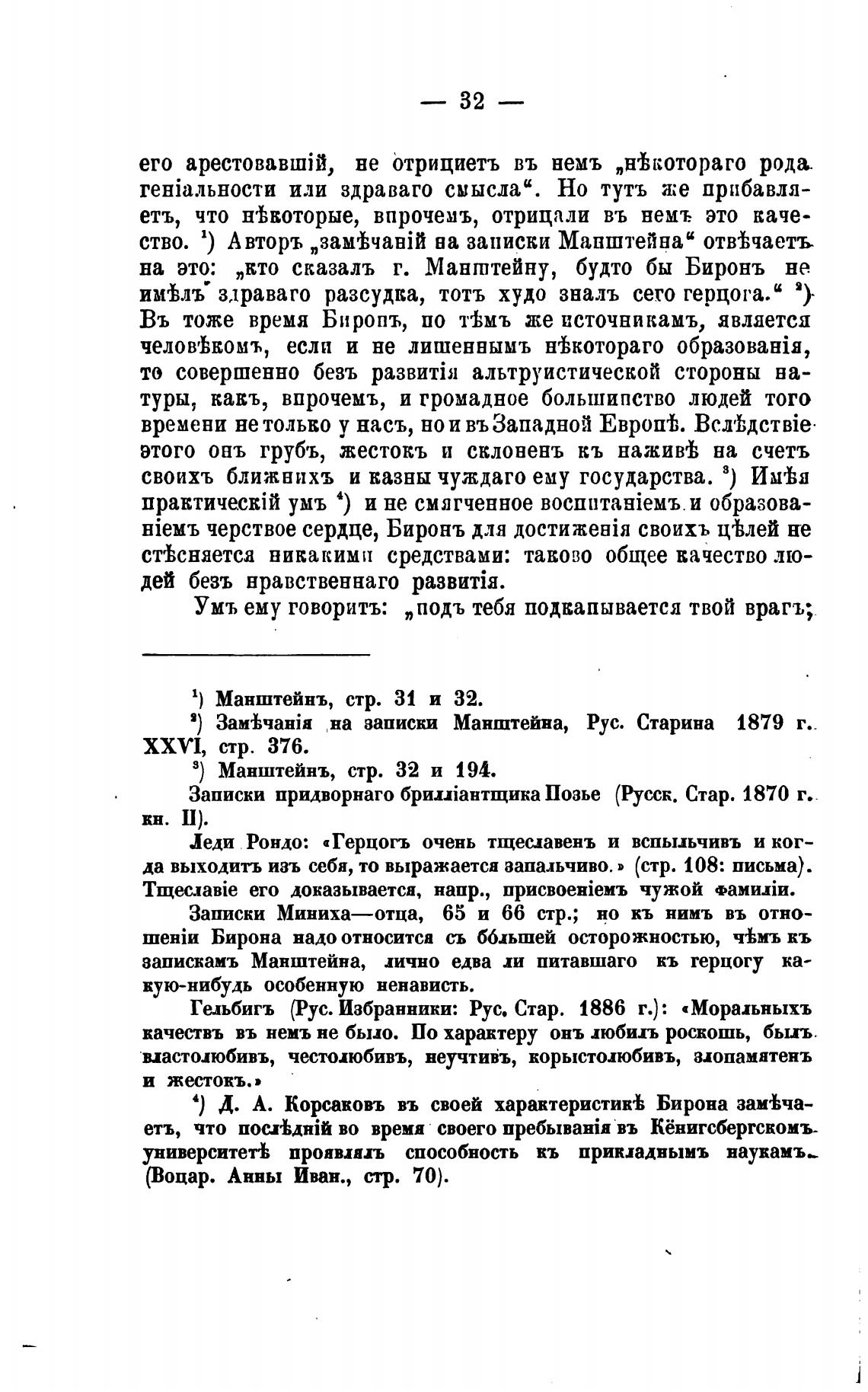 4) Д. А. Корсаковъ въ своей характеристик•ь Бирона зам•Ьча-