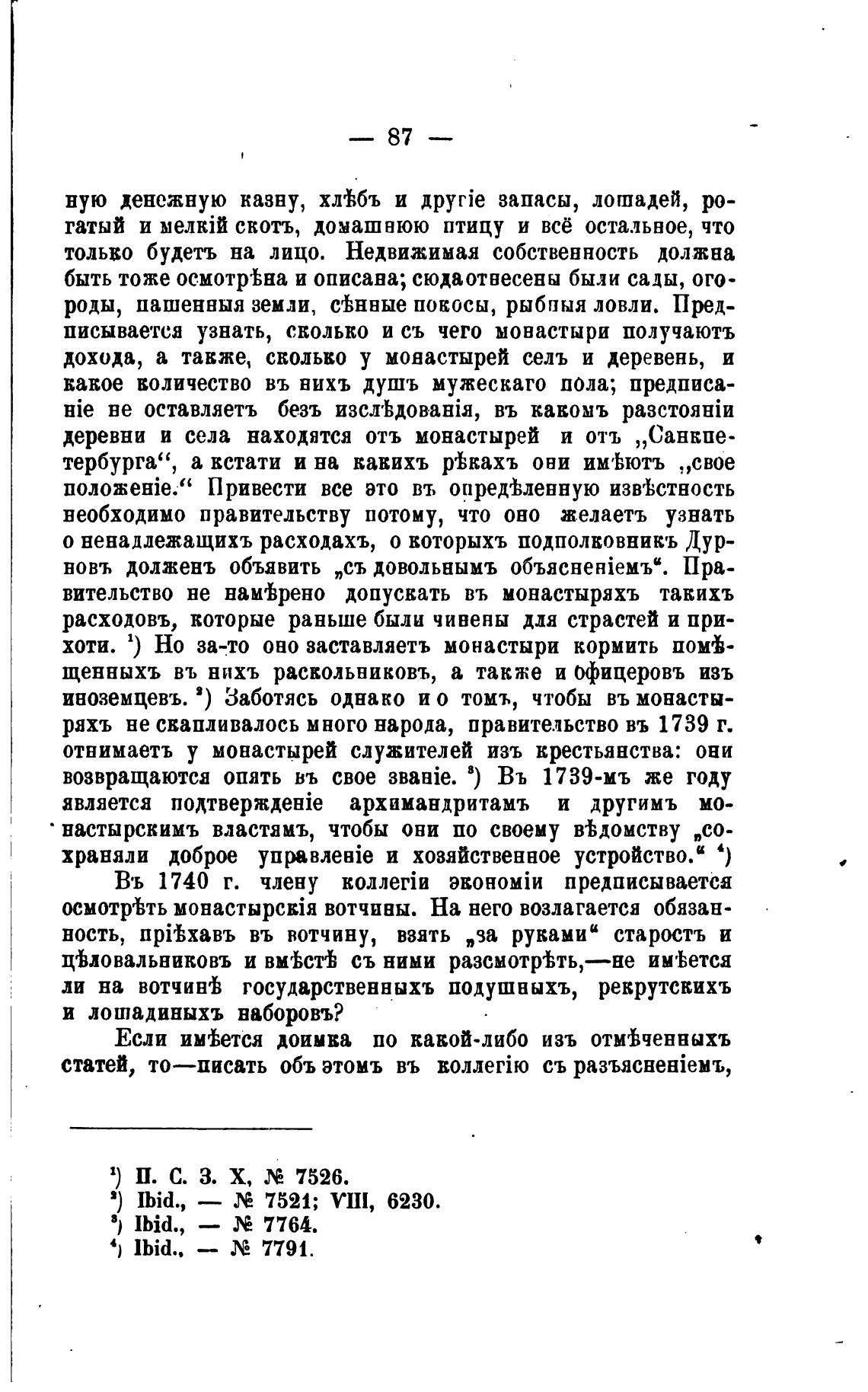 отнимаетъ у монастырей служителей изъ крестьянства: они