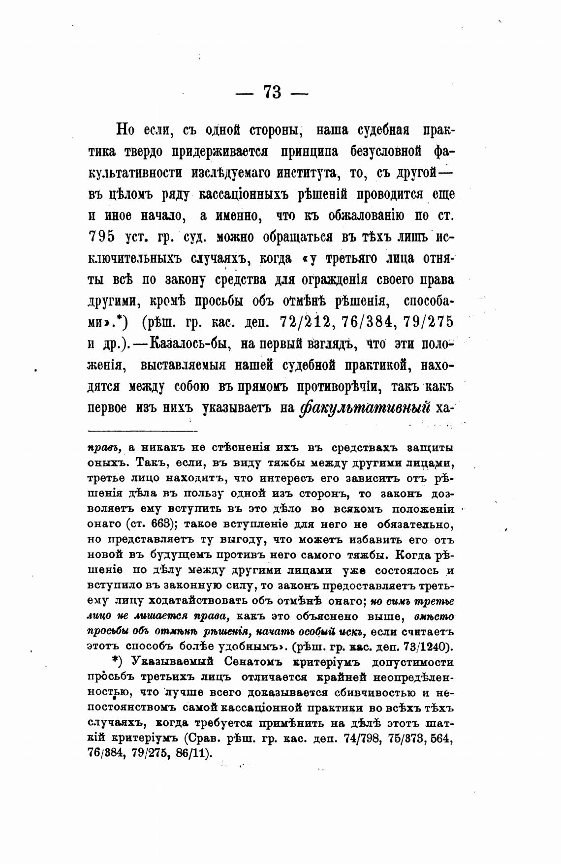 *) Указываемый Сенатомъ xpHTepiYMb допустимости