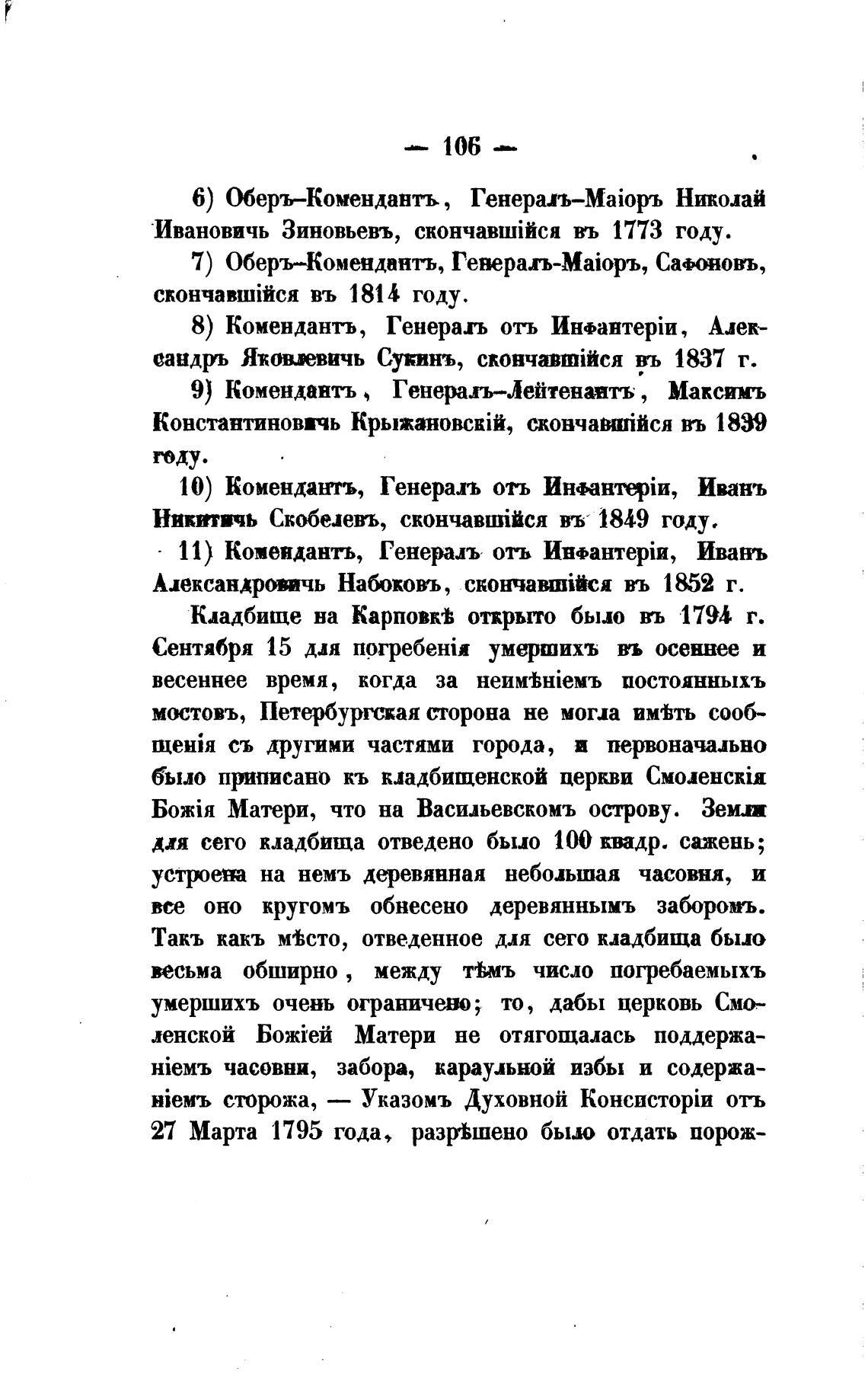 Кладбище на Карповк± открыто было мь 179b г.