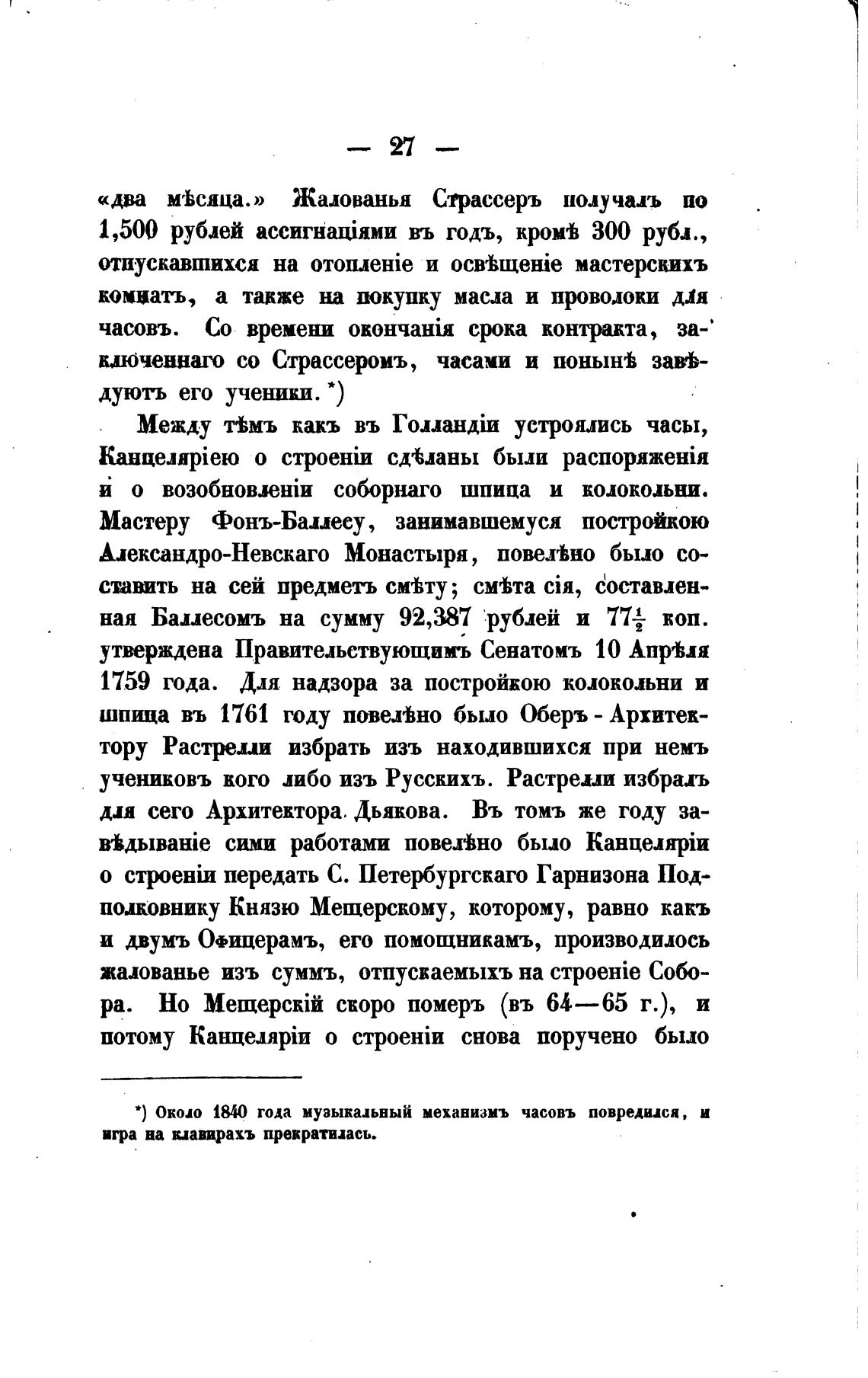 • ) Около 1840 года музыкальный механизмъ часовъ повредился, и