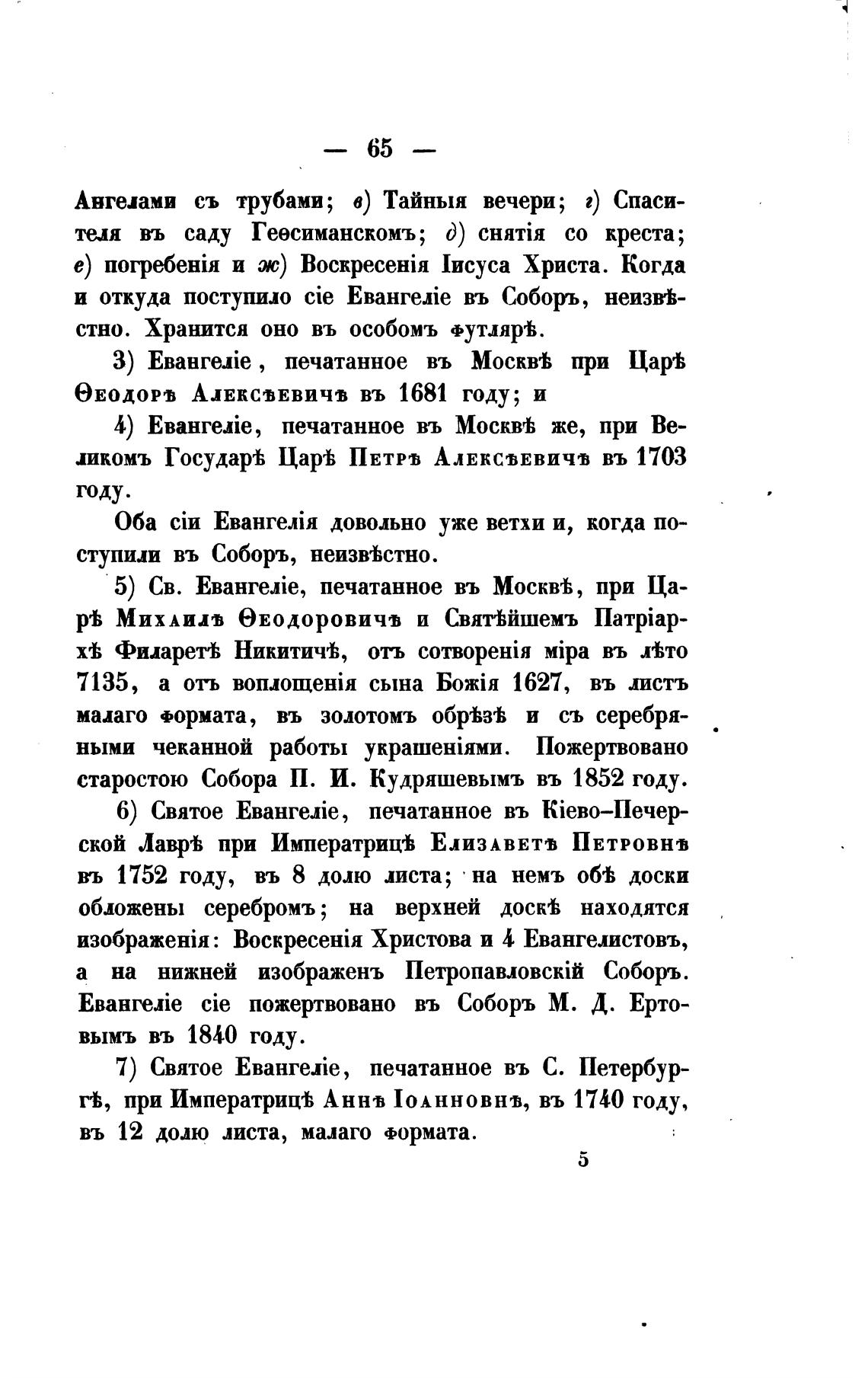5) Св. EBaHNJie, печатанное въ Москвы при Ца-