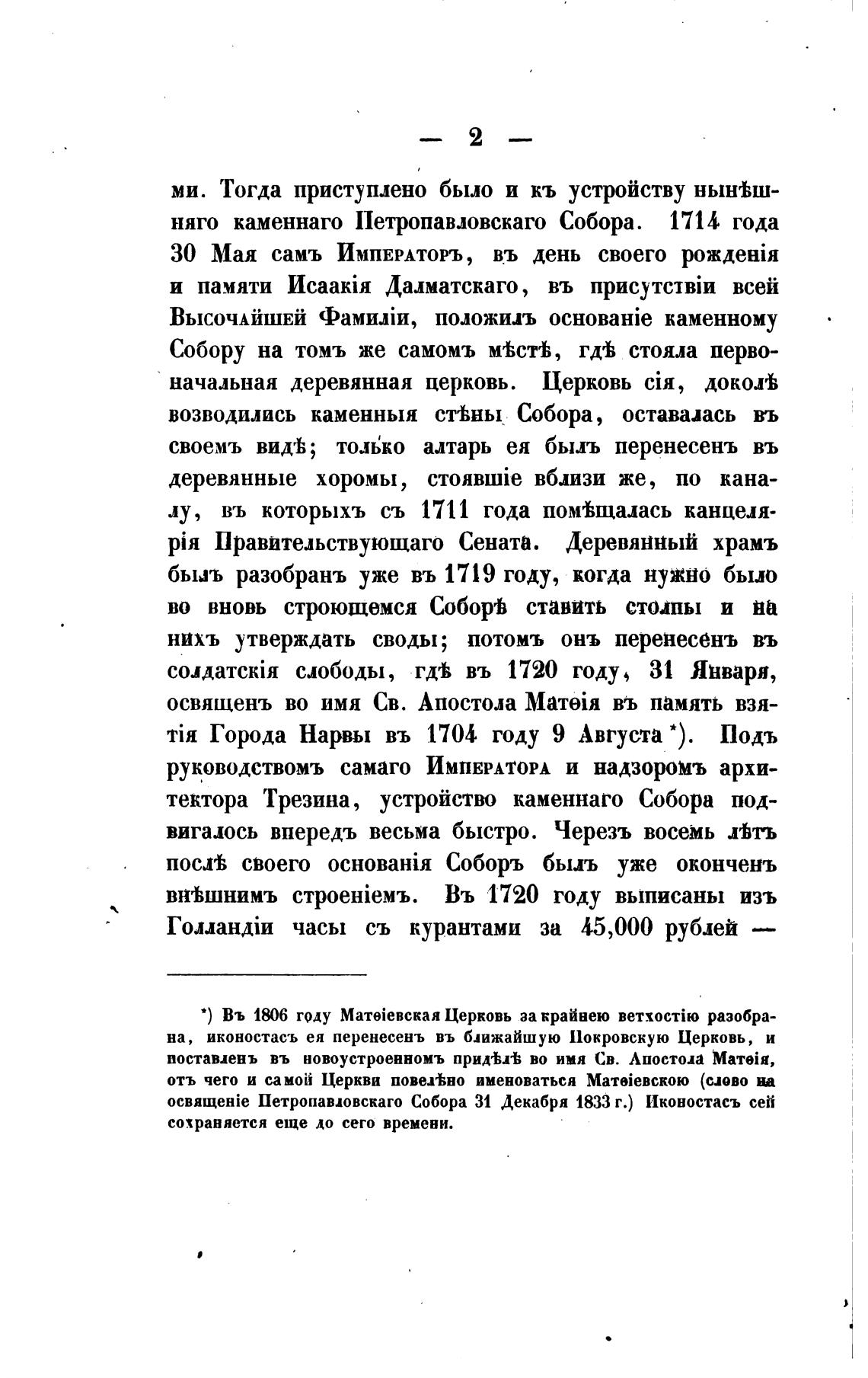 няго каменнаго 11етропавловскаго Собора. 1714 года
