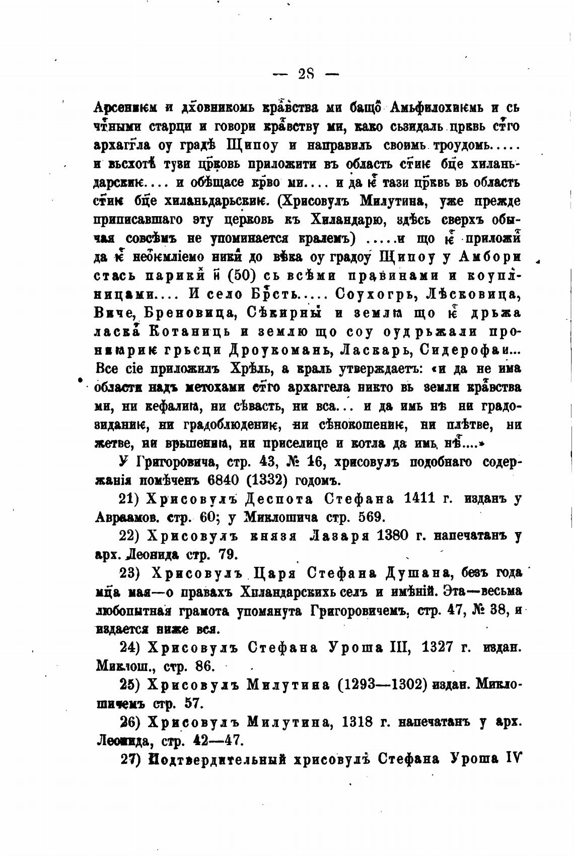 22) Хрисовулъ выявя Лазаря 1380 г. напечатанъ у