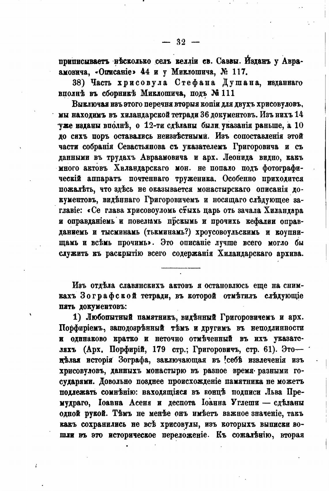 Вывлючаа изъ этого перечня вторыя для двухъ хрисовуловъ,