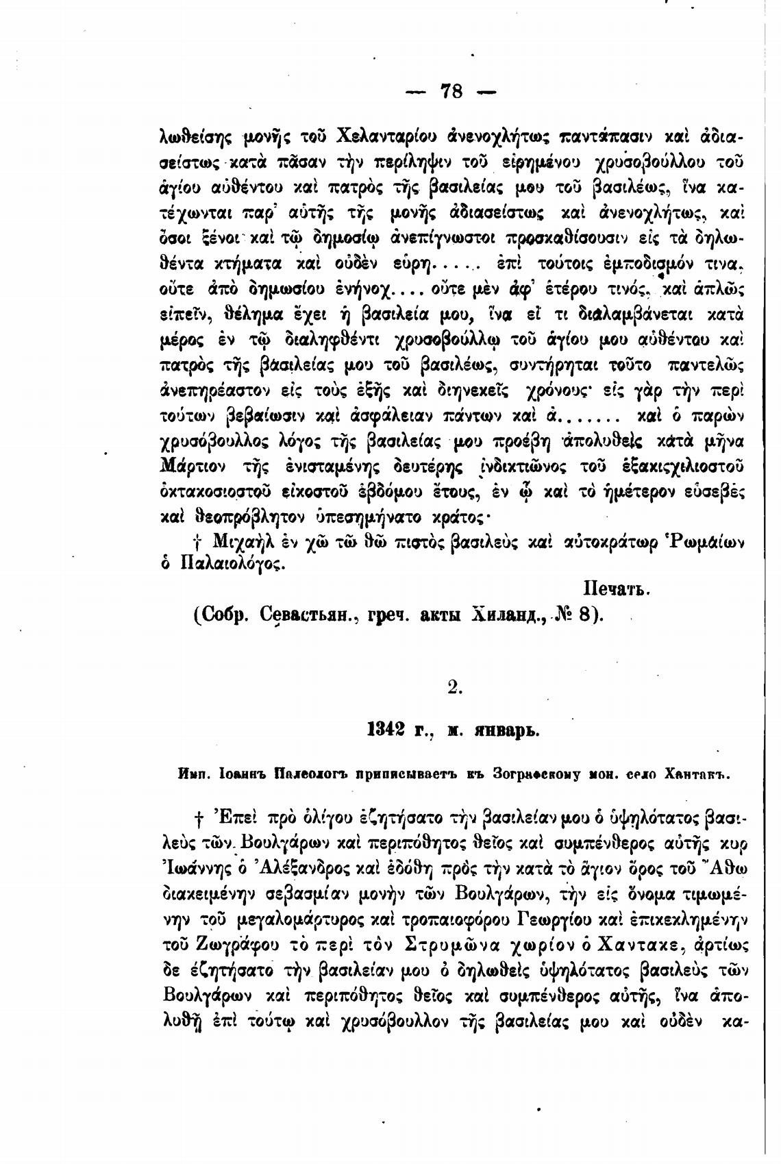 (Собр. Севастьян., греч. акты Хиланд., .Х2 8).