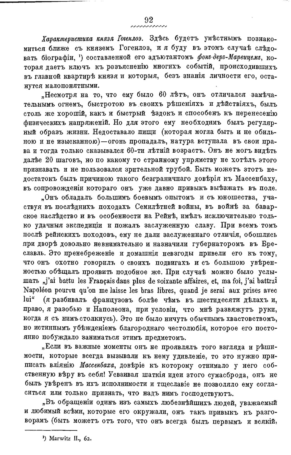 вать 1) составленной его адъютантомъ фона•Дер6-Марвицема, ко-