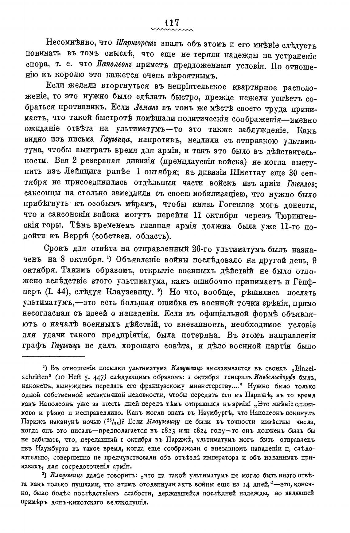 2) Клаузевичб далее говорить: „что на такой ультиматумъ не могло быть инаго отв±-