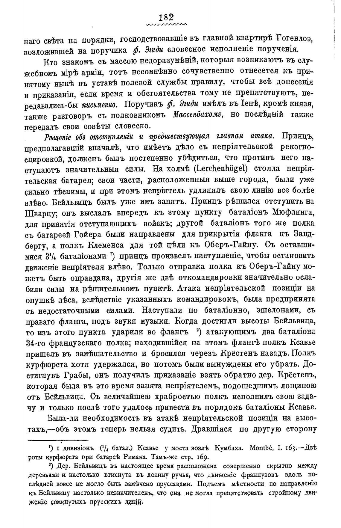 влВво. Бейльвицъ быль уже имъ занять. Принцъ рВшился отступить на