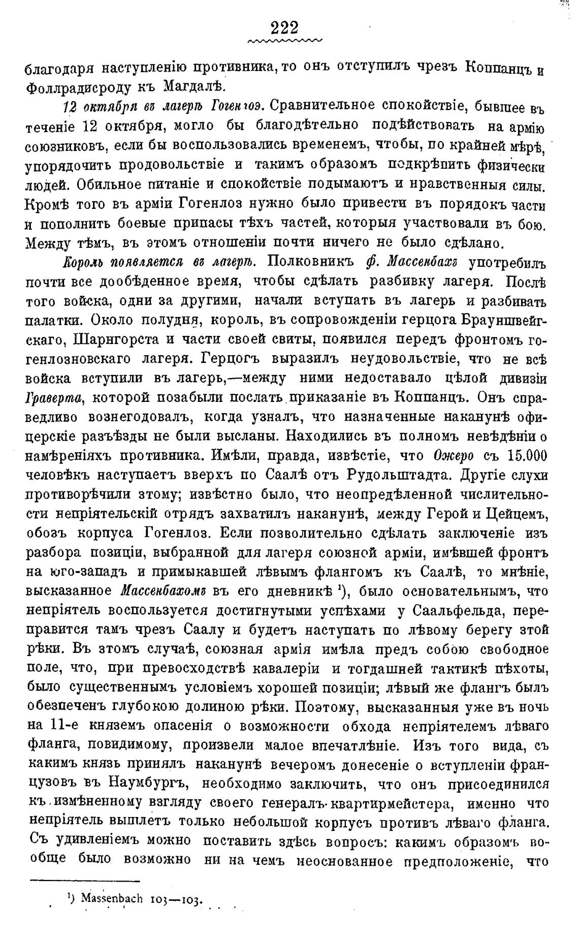 Еороль появляется ва лагери. Полковникъ ф. Массенбатд употребилъ