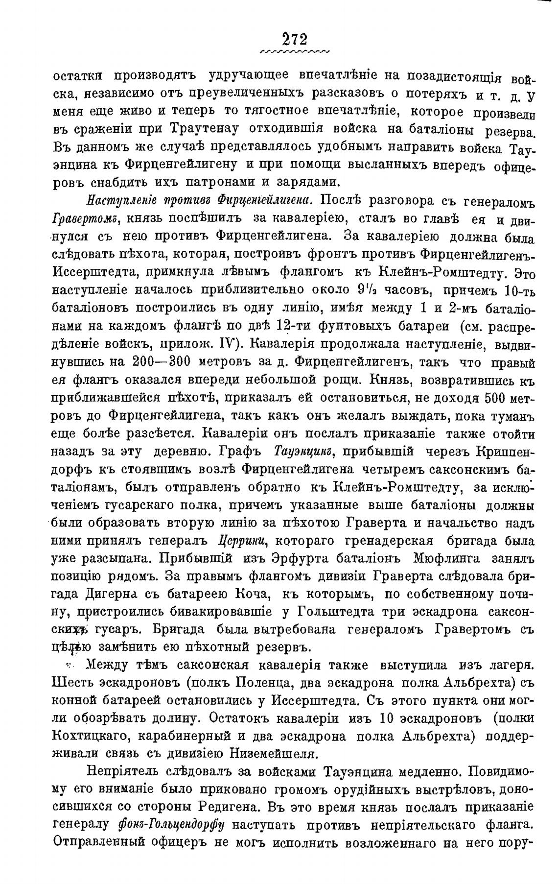 сјтЬдовать шЬхота, которая, построивъ фронтъ противь Фирценгейлигенъ-