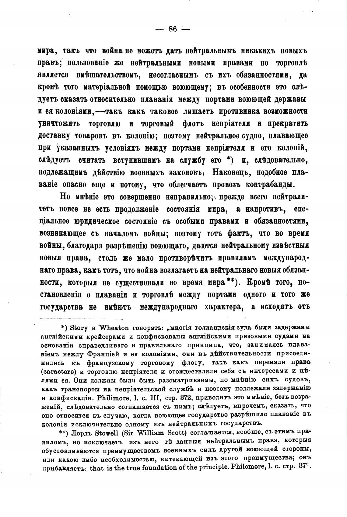 * * ) Лордъ StowelL (Sir William Scott) соглашается, вообще, съ этимъ пра-