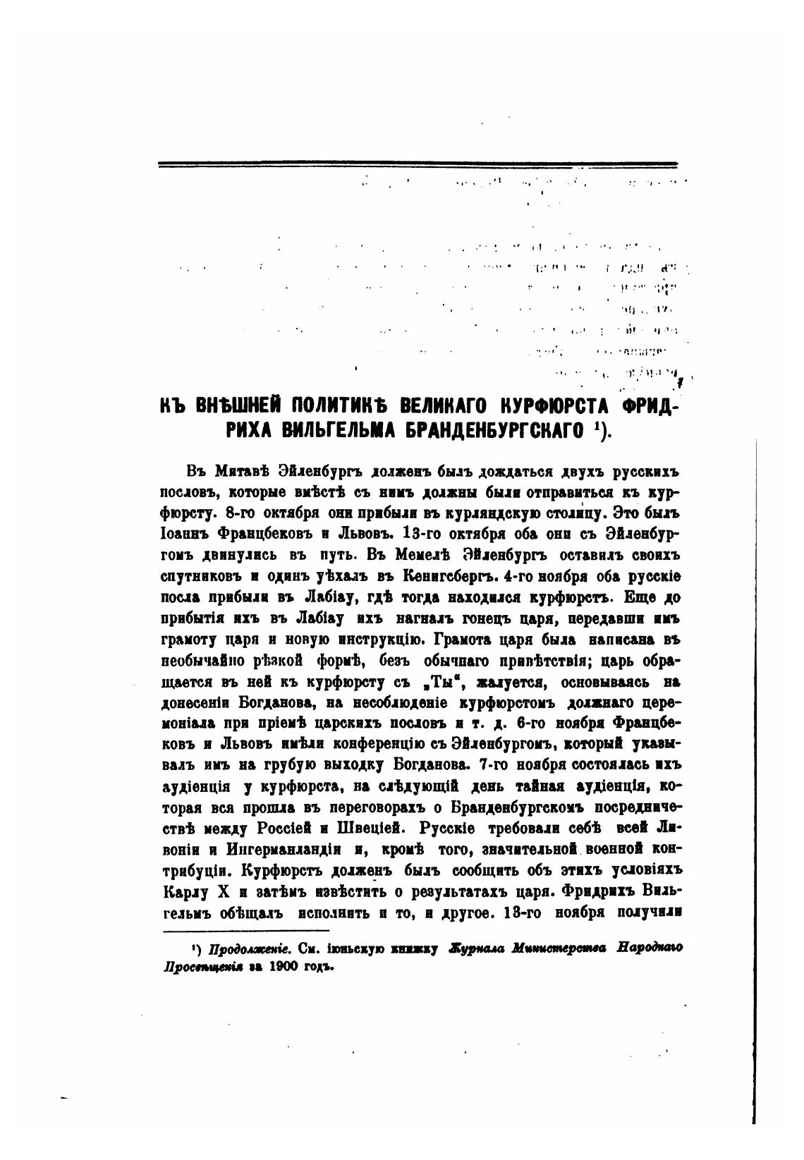 КЬ ВНЂШНЕЯ ПОЛИТИКЪ ВЕЛИКАГО КУРФЮРСТА ФРИД-