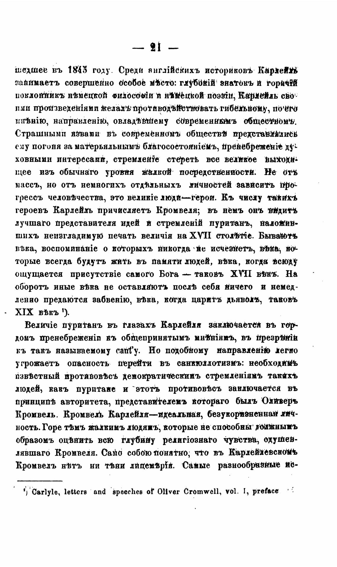 героевъ Карлейхь причйсляетъ Кромвеля; въ нёмъ онт видим