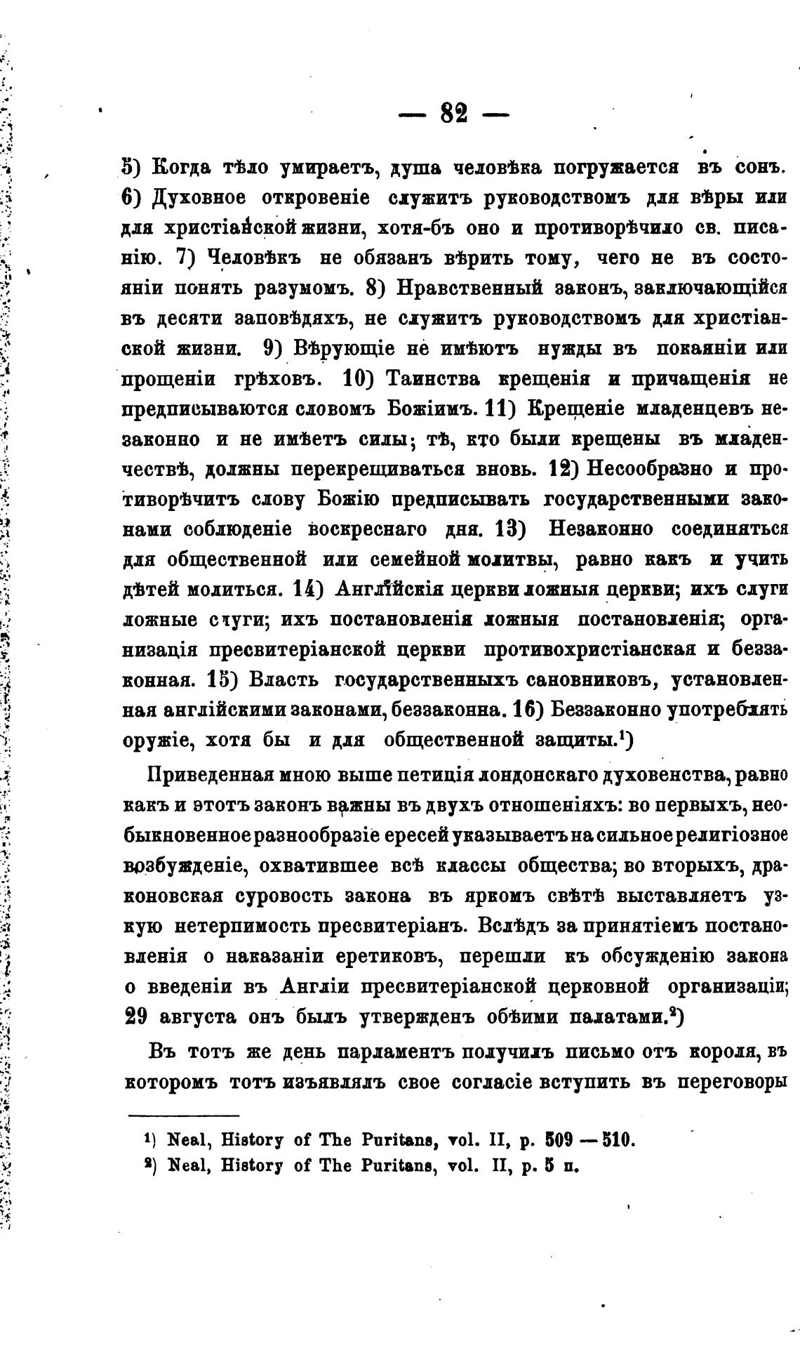 1) Neal, History of The Puritans, vol. II, р. 509