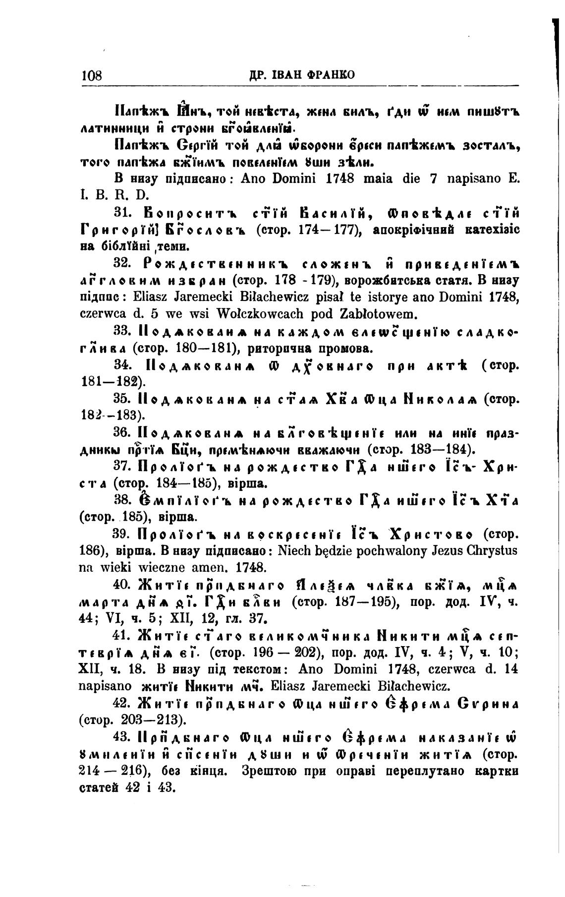 : Eliasz Jaremecki Bilachewicz pisal te istorye апо Domini 1748,