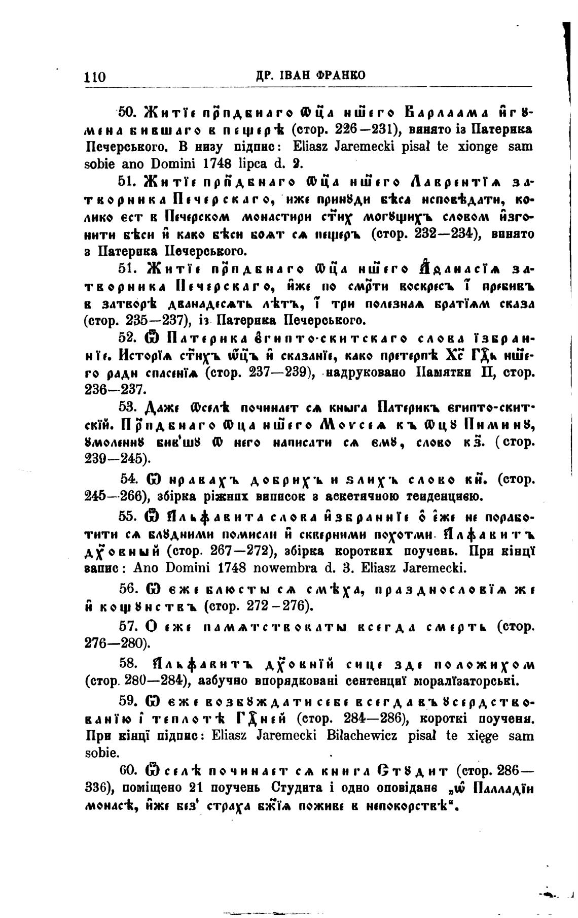 (стор. 280—284), азбучно сентенциУ Dtopamaopcbki.