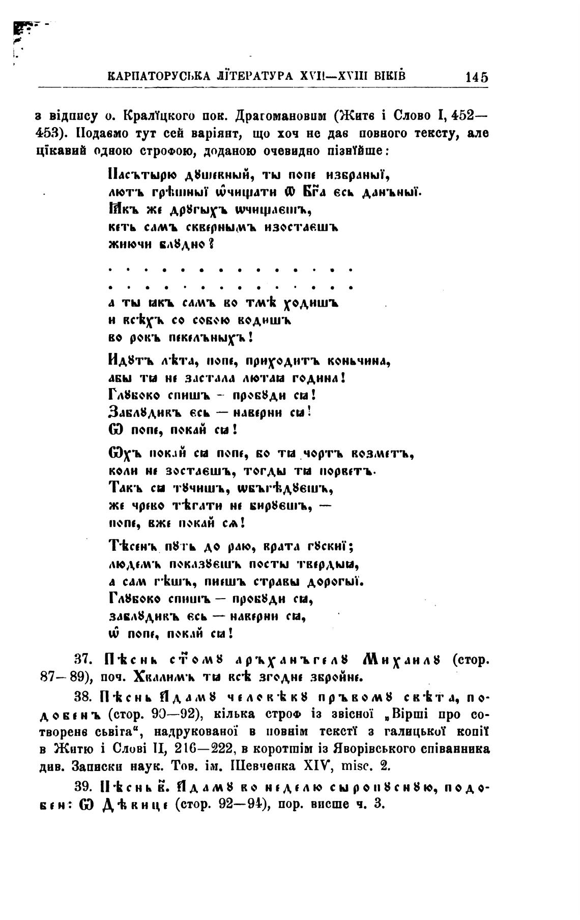 а о. КралУцкого иок. Драгомановим (Жатв i Слово 1, 452—