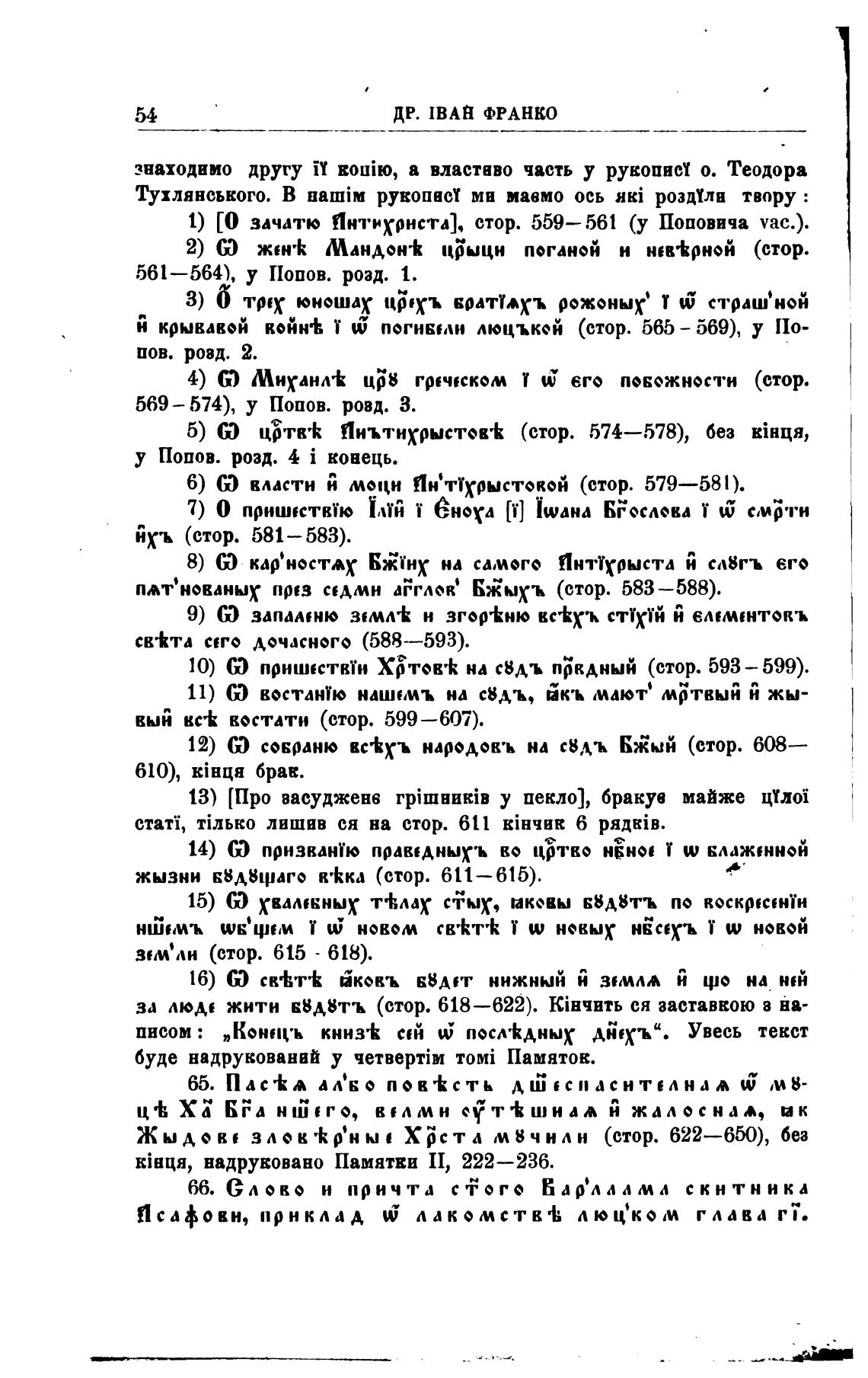 1) [О зачатю Пнтвхонста], стор. 559—561 (у Поповича vac.).