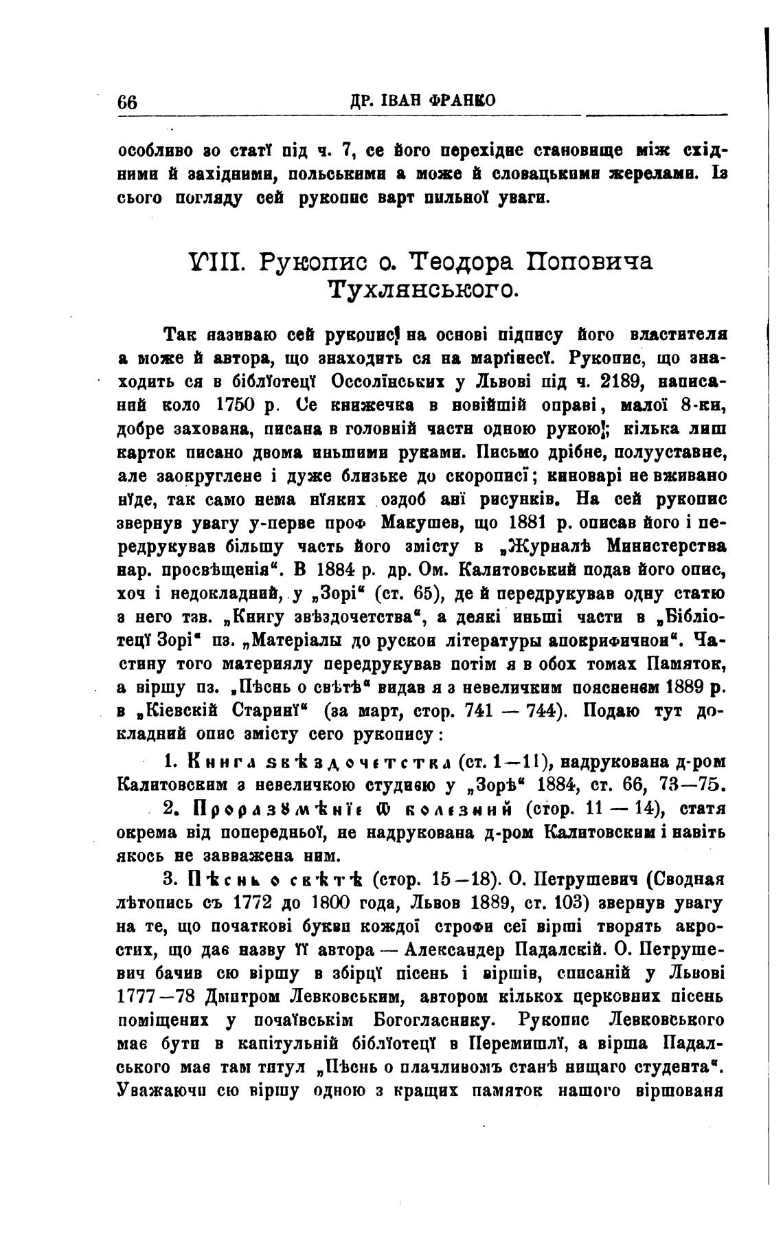 VIII. Рукопис о. Теодора Поповича